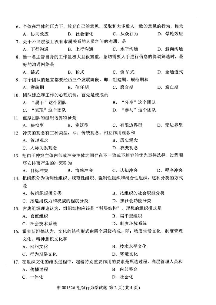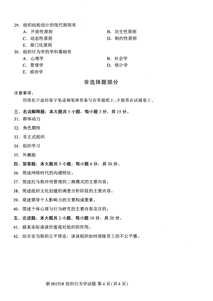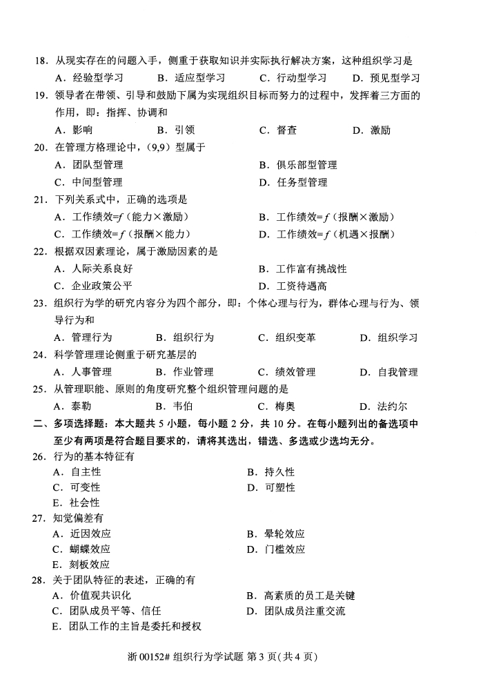 试题科目:组织行为学试题