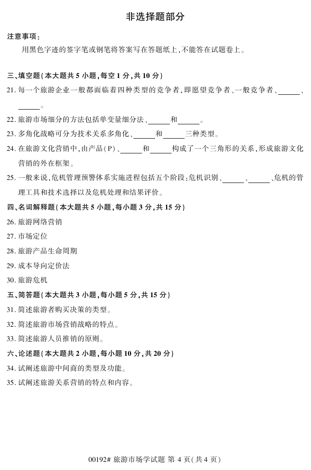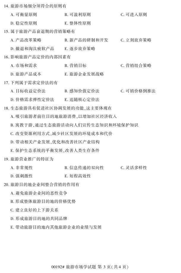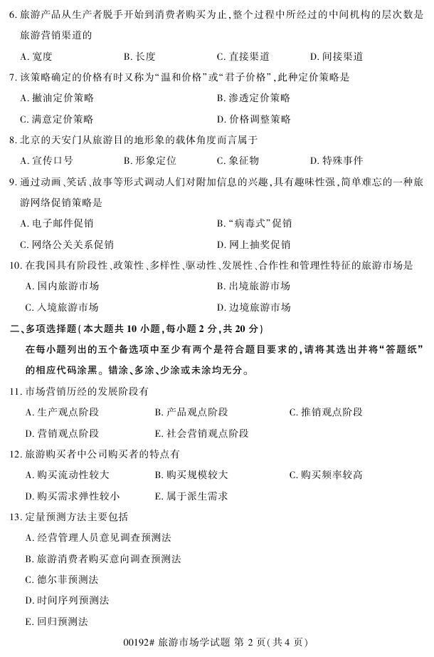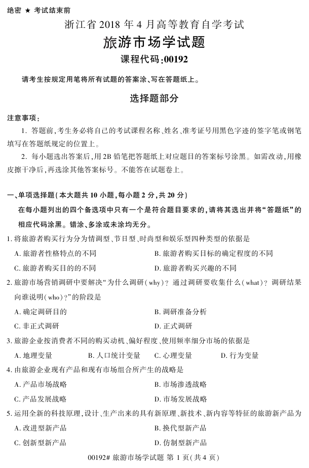 浙江省2018年4月高等教育自考00192旅游市场学试题PDF
