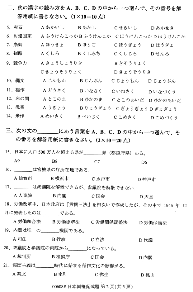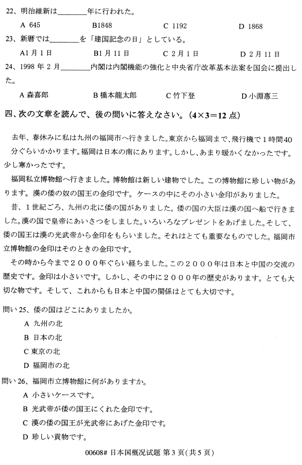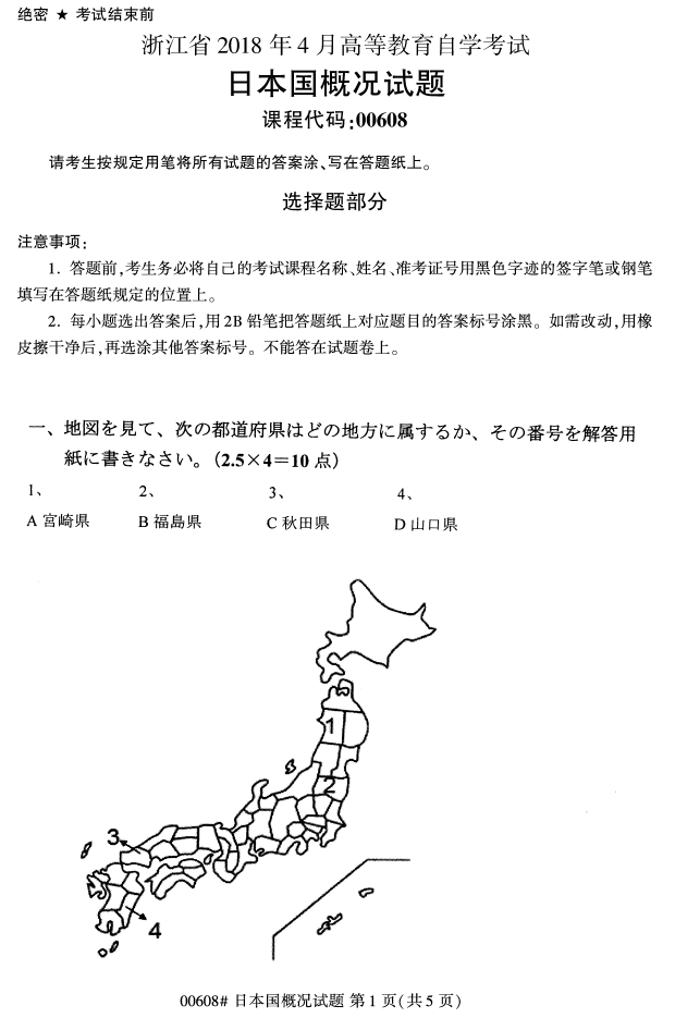 浙江省2018年4月高等教育自考00608日本国概况试题PDF