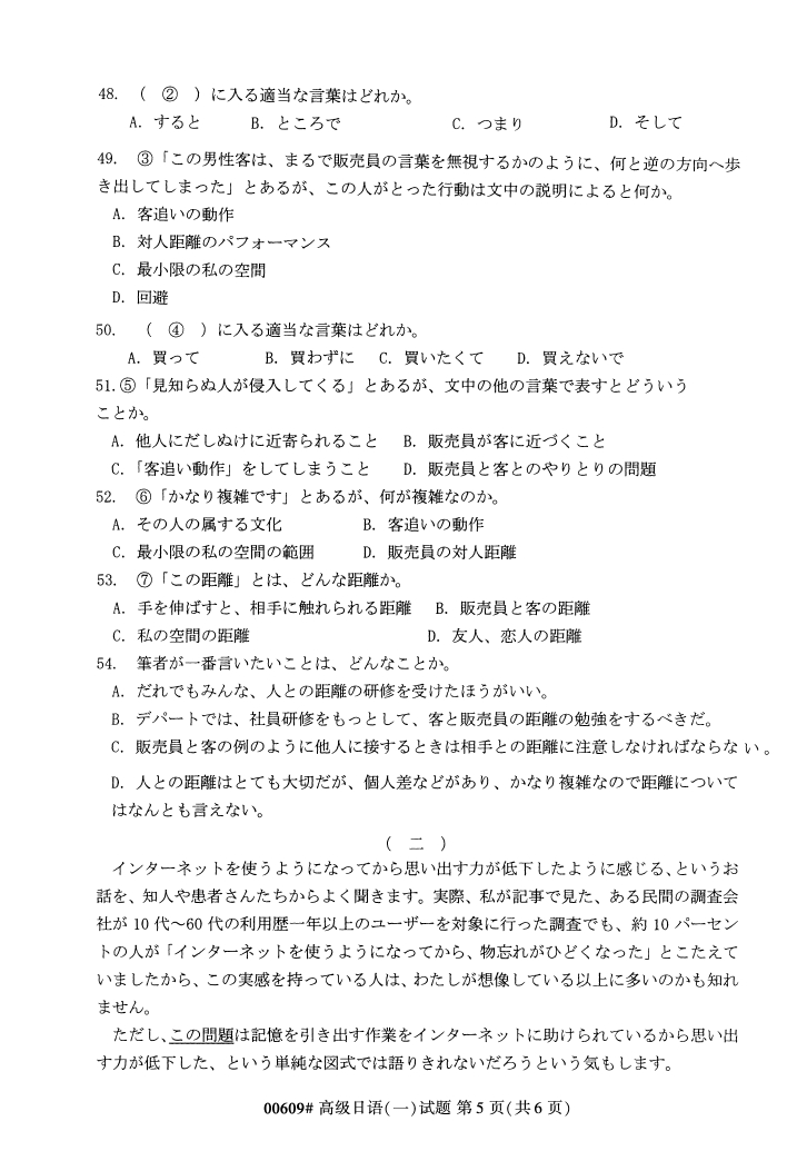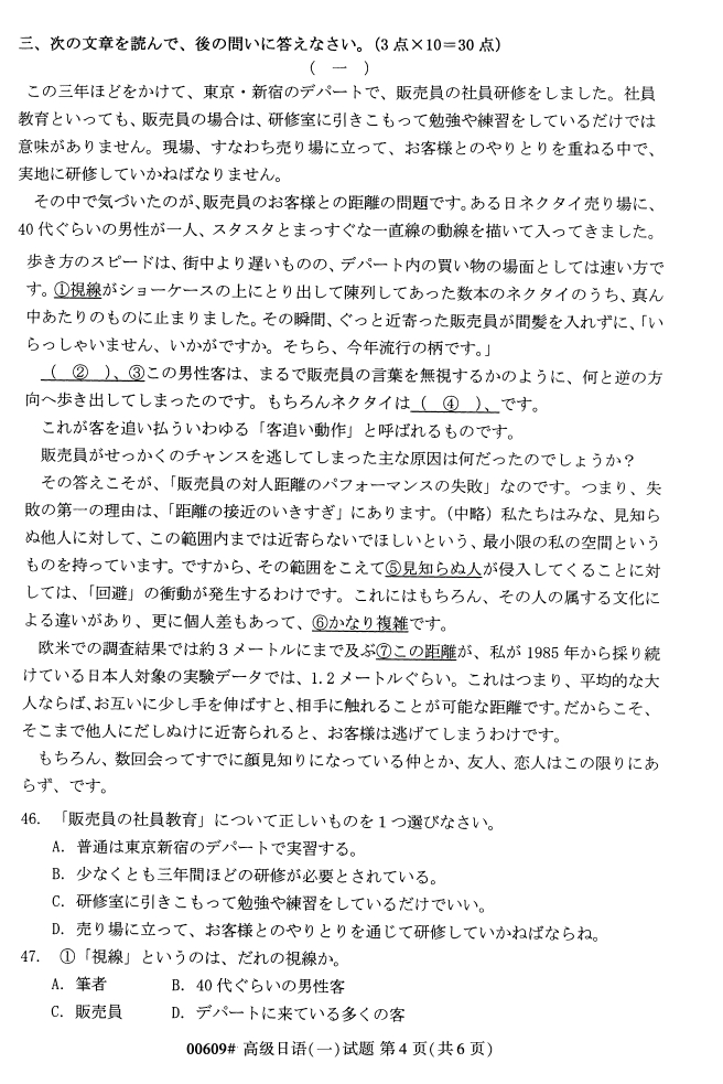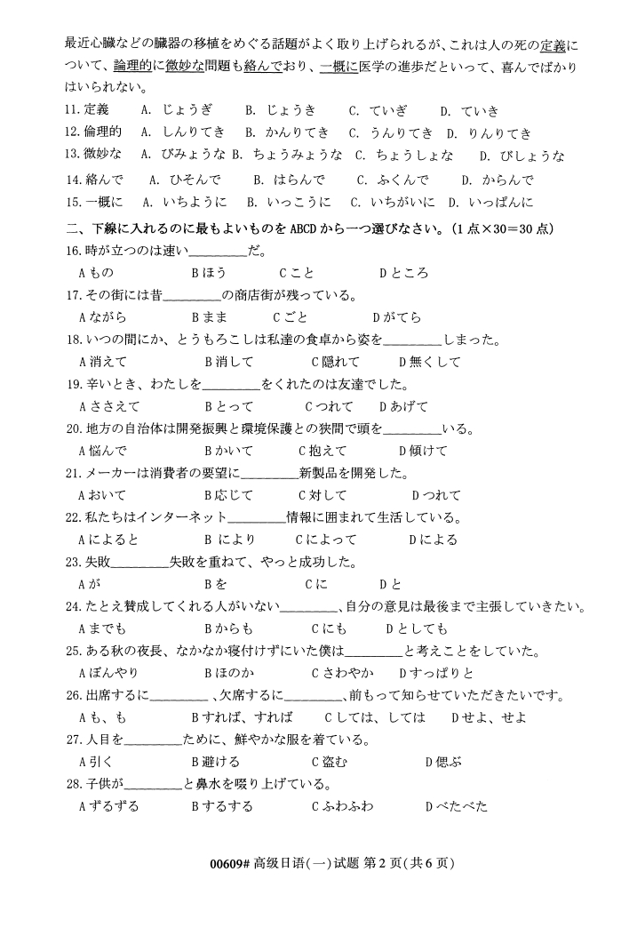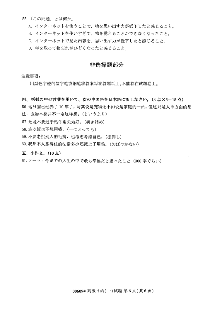 试题科目:高级日语(一)试题