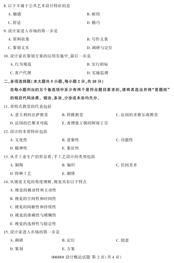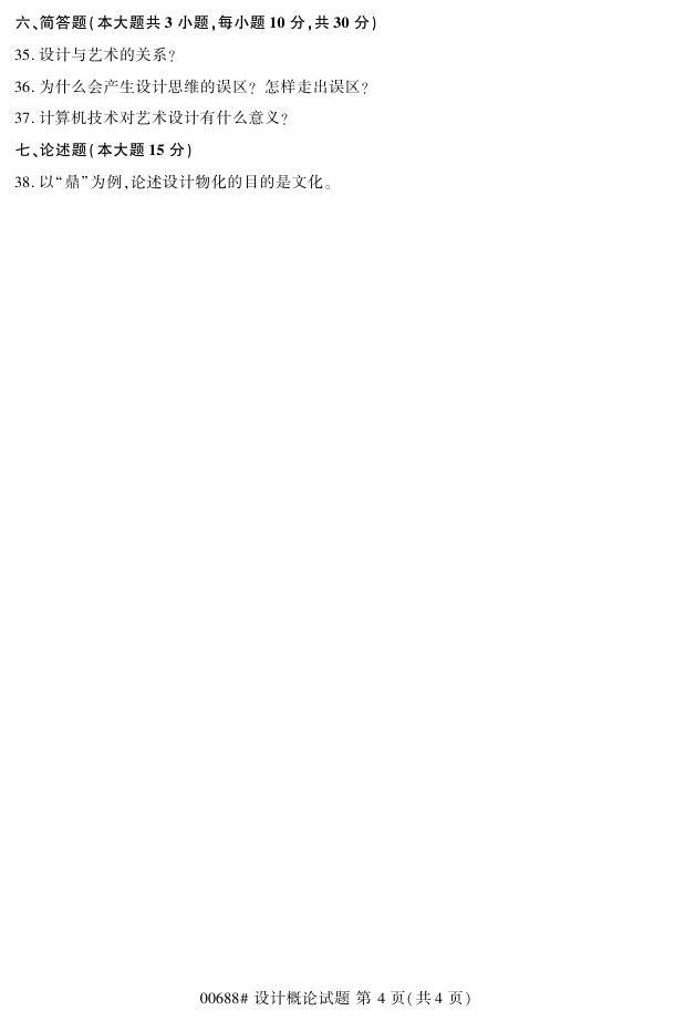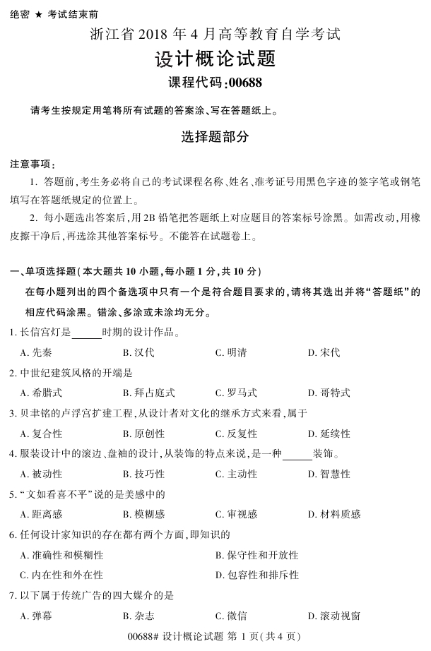 浙江省2018年4月高等教育自考00688设计概论试题PDF