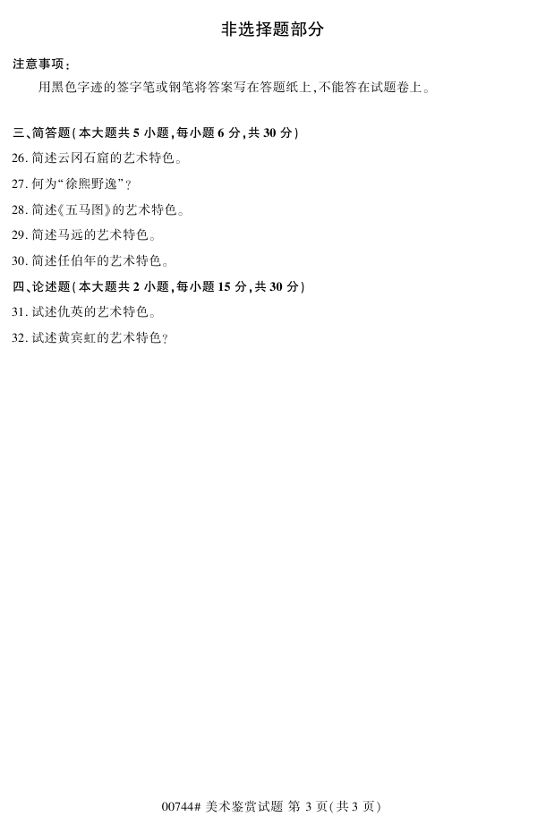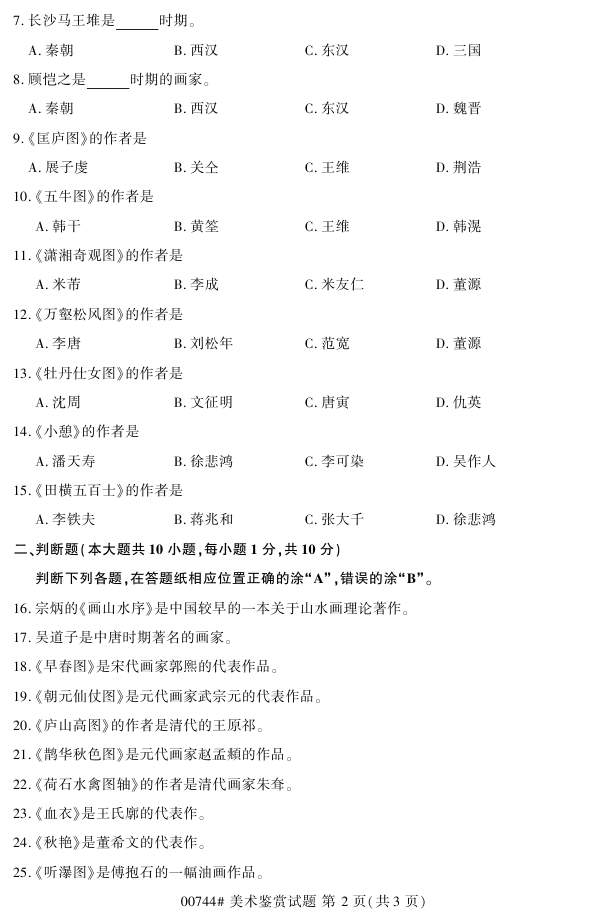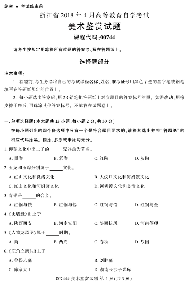 浙江省2018年4月高等教育自考00744美术鉴赏试题PDF