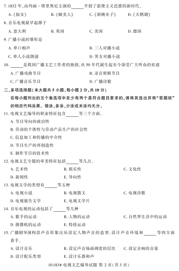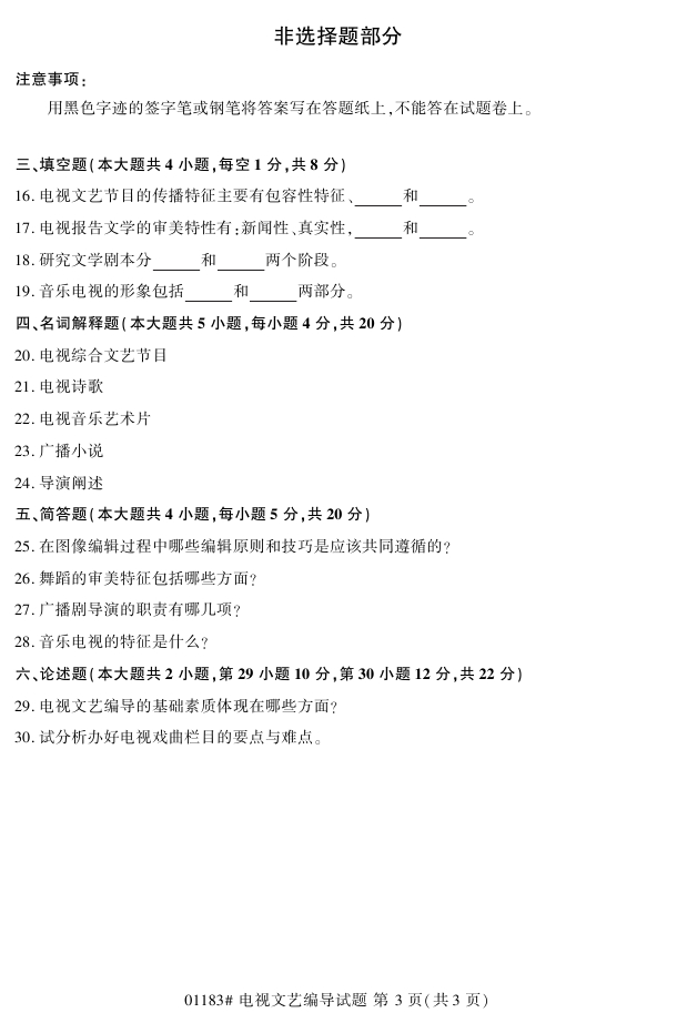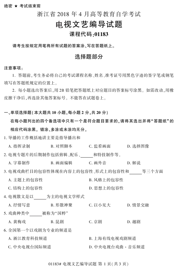 浙江省2018年4月高等教育自考01183电视文艺编导试题PDF