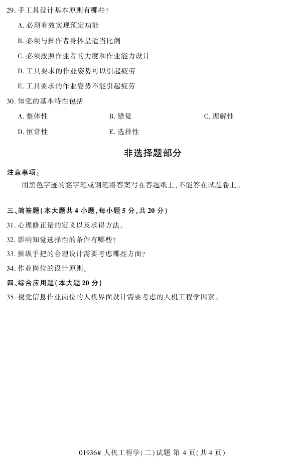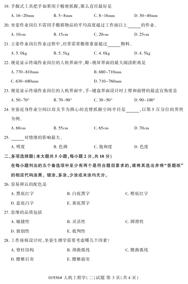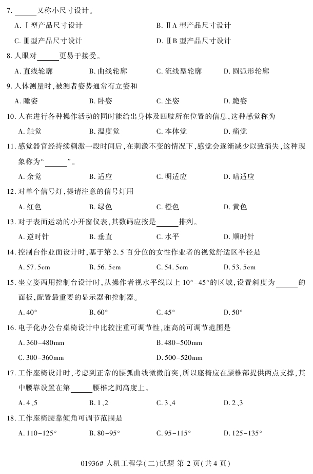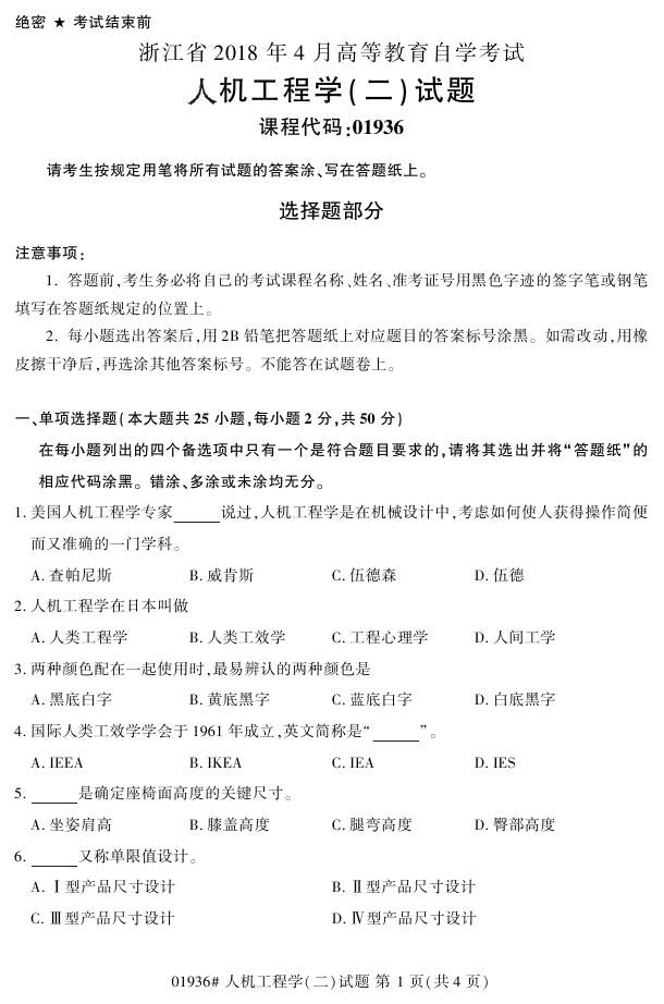 浙江省2018年4月高等教育自考01936人机工程学(二)试题PDF