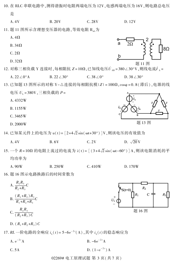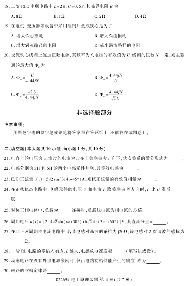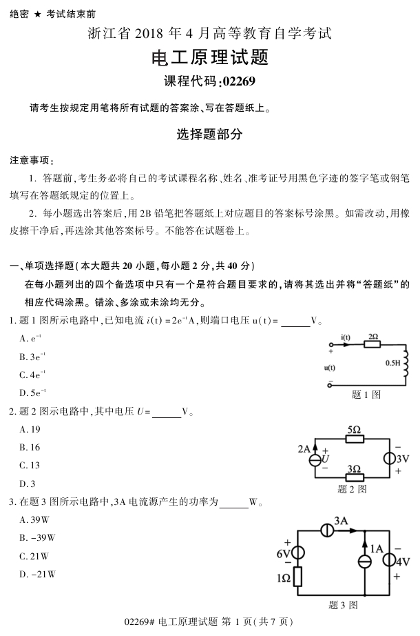 浙江省2018年4月高等教育自考02269电力原理试题PDF