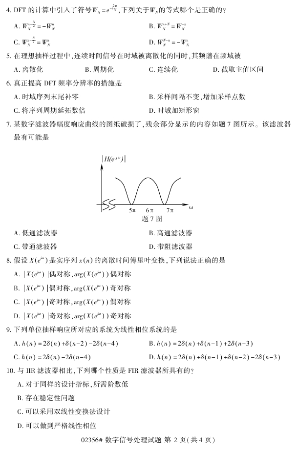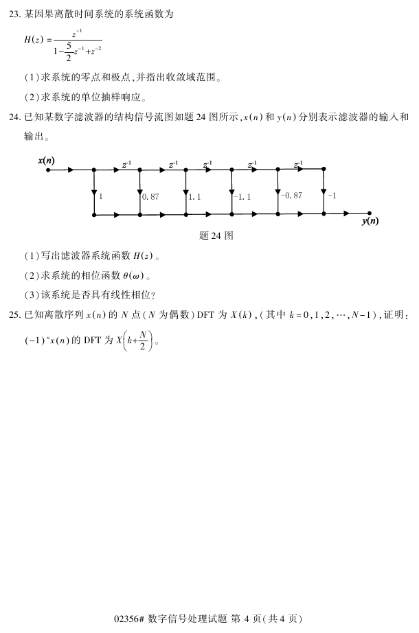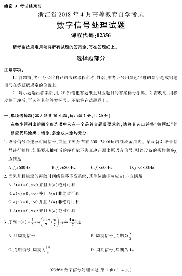 浙江省2018年4月高等教育自考02356数字信号处理试题PDF