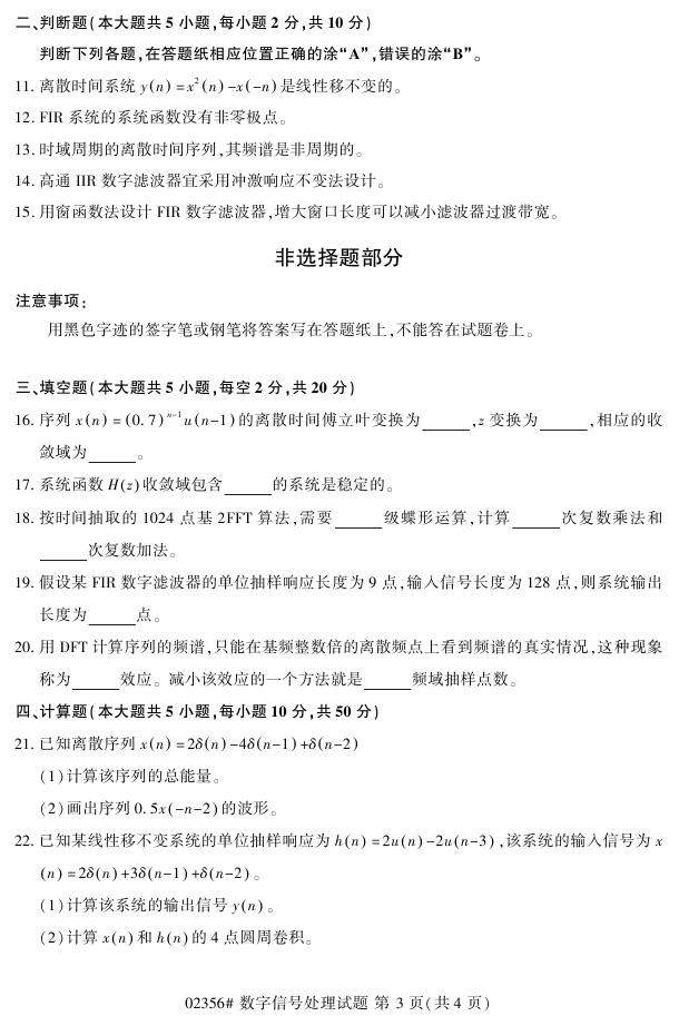 试题科目:数字信号处理试题