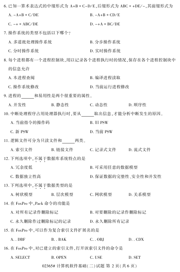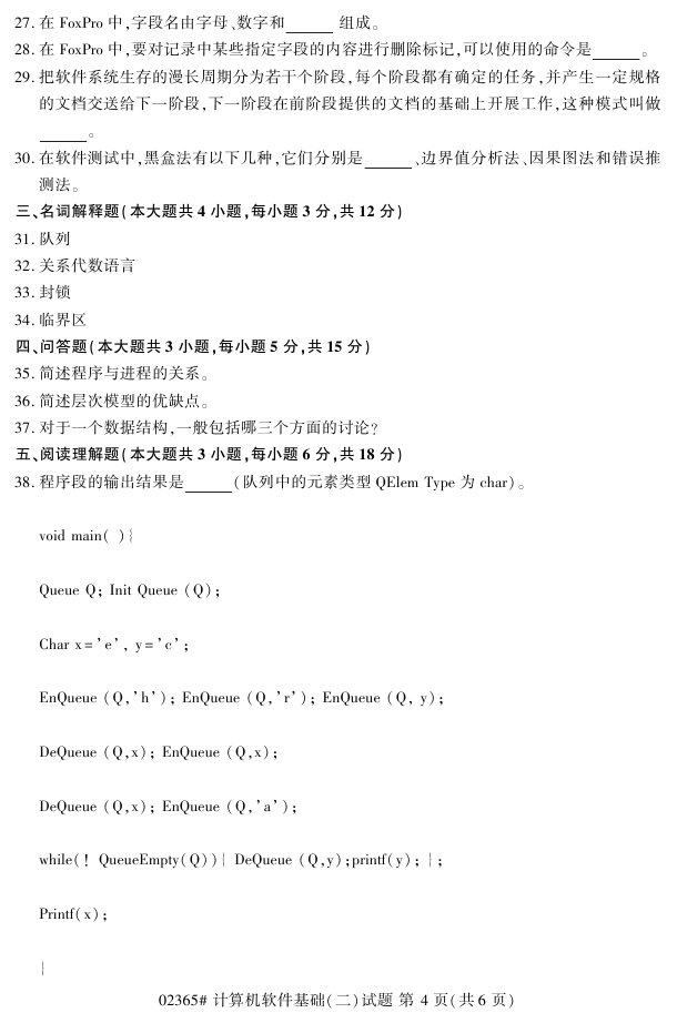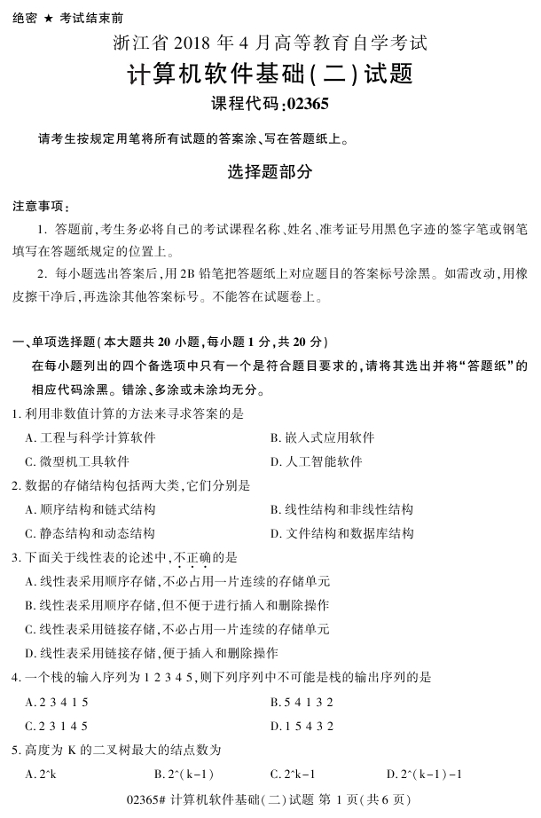 浙江省2018年4月高等教育自考02365计算机软件基础(二)试题PDF