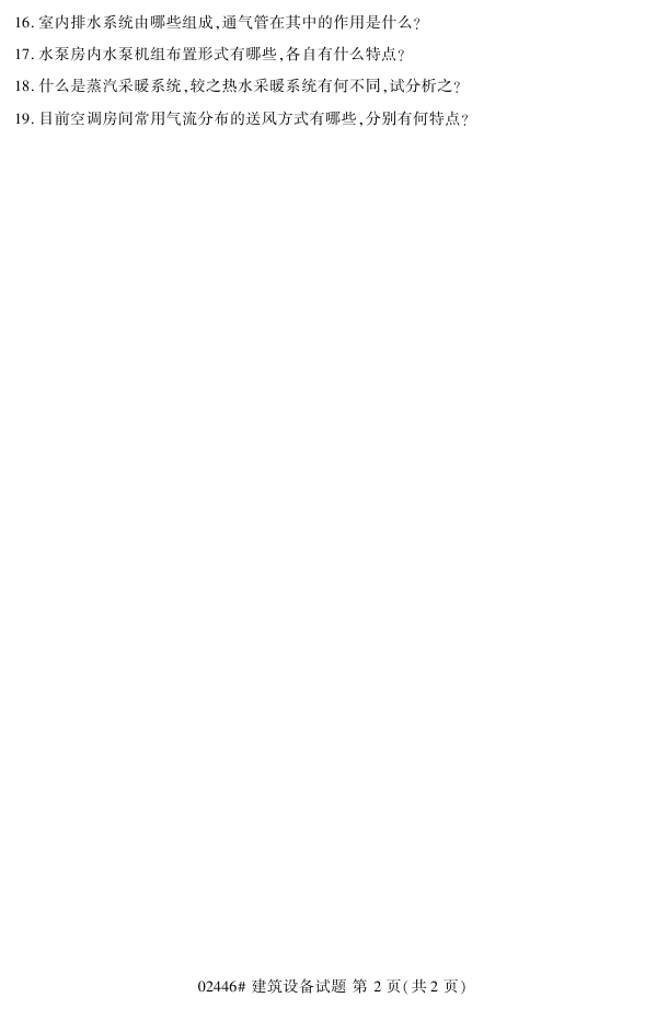浙江省2018年4月高等教育自考02446建筑设备试题PDF