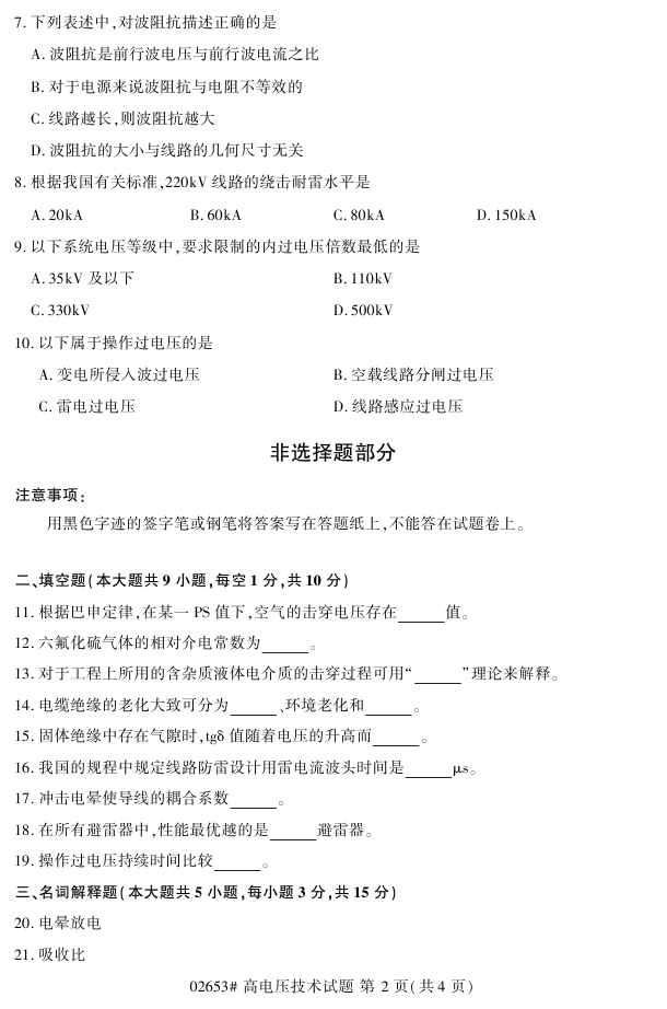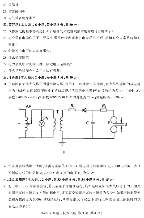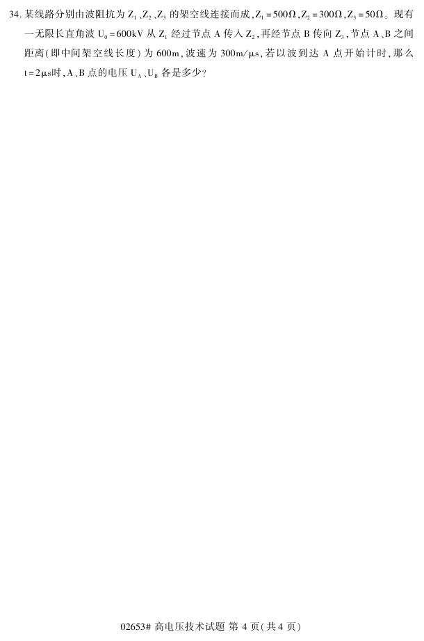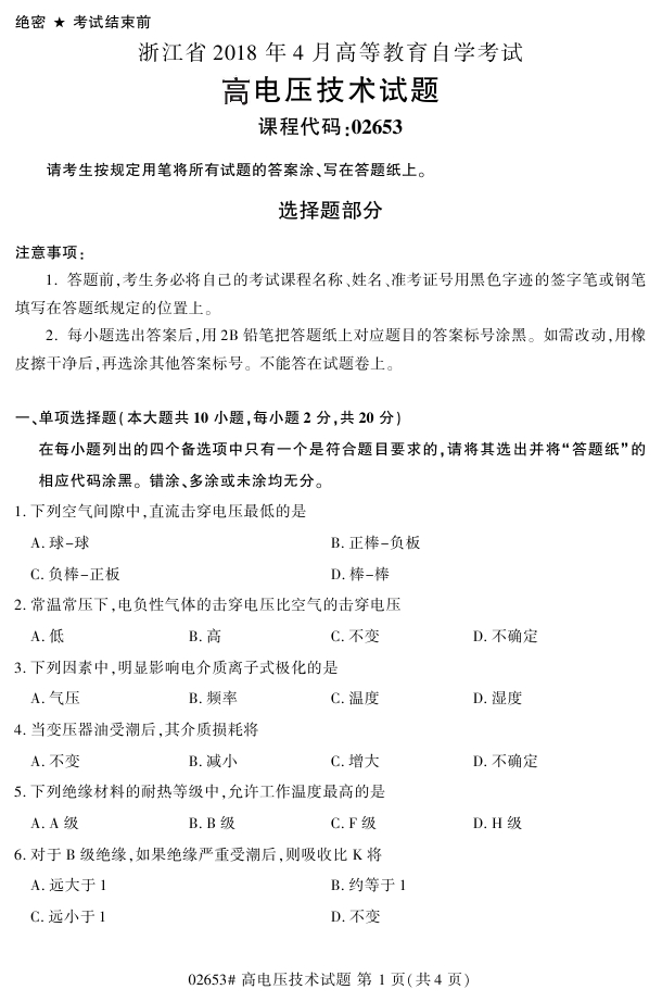 浙江省2018年4月高等教育自考02653高电压技术试题PDF