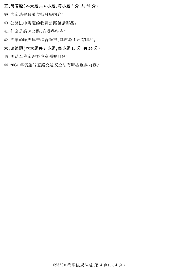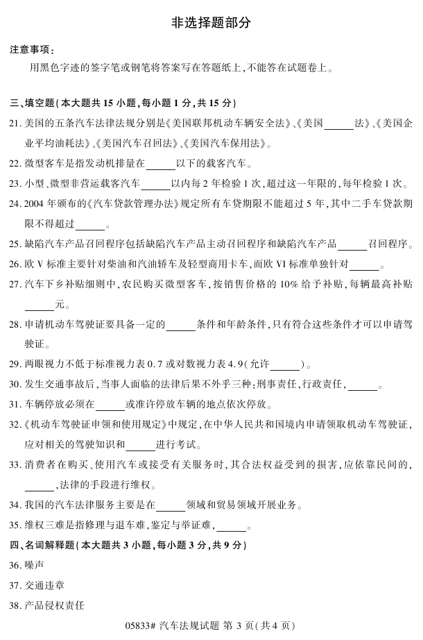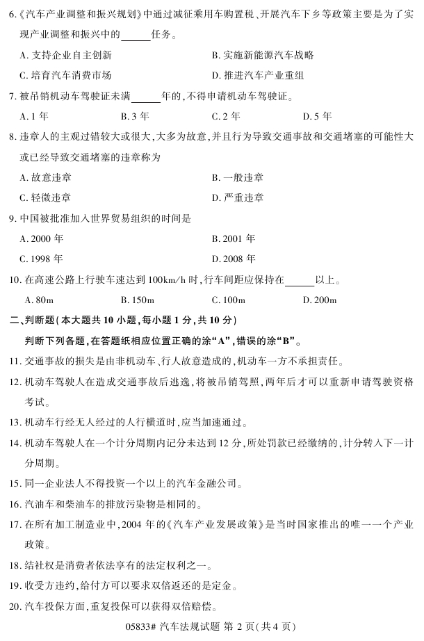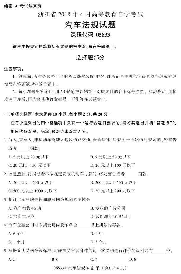 浙江省2018年4月高等教育自考05833汽车法规试题PDF