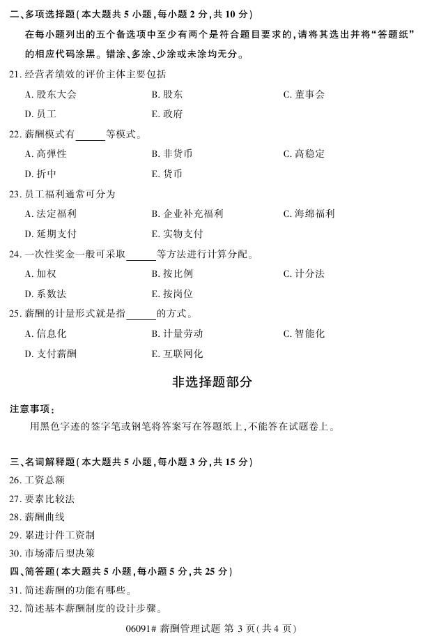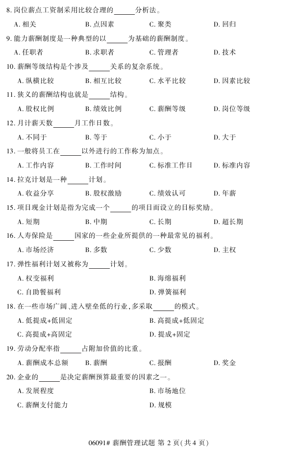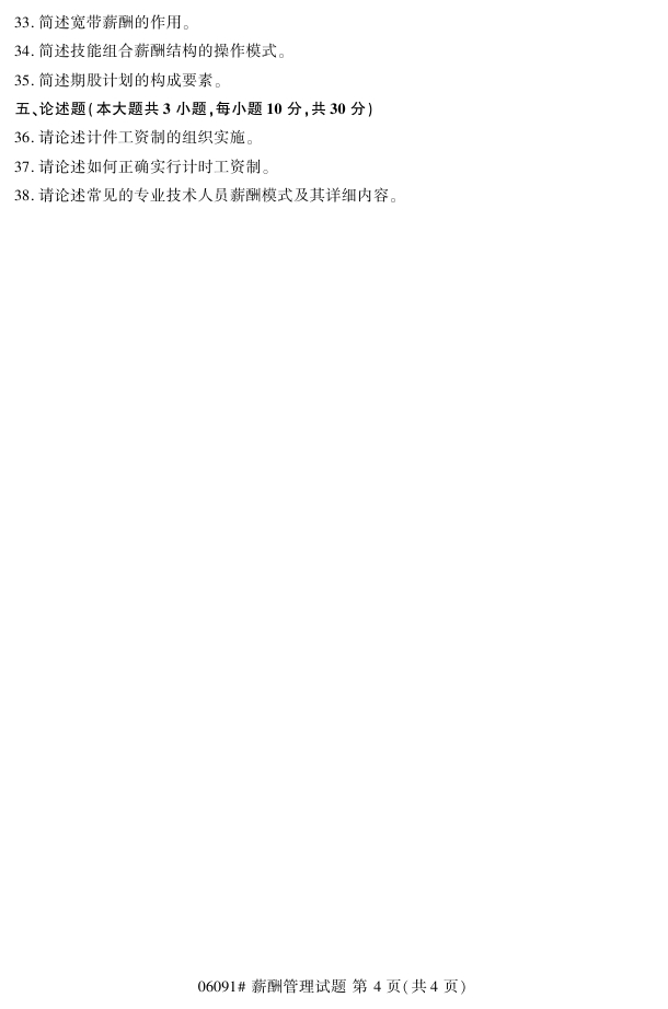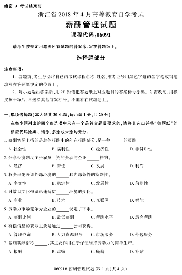 浙江省2018年4月高等教育自考06091薪酬管理试题PDF