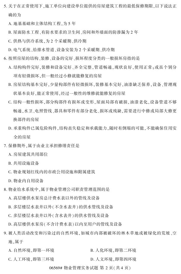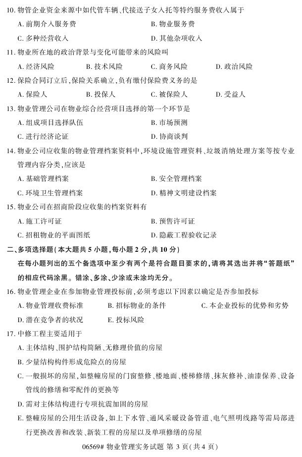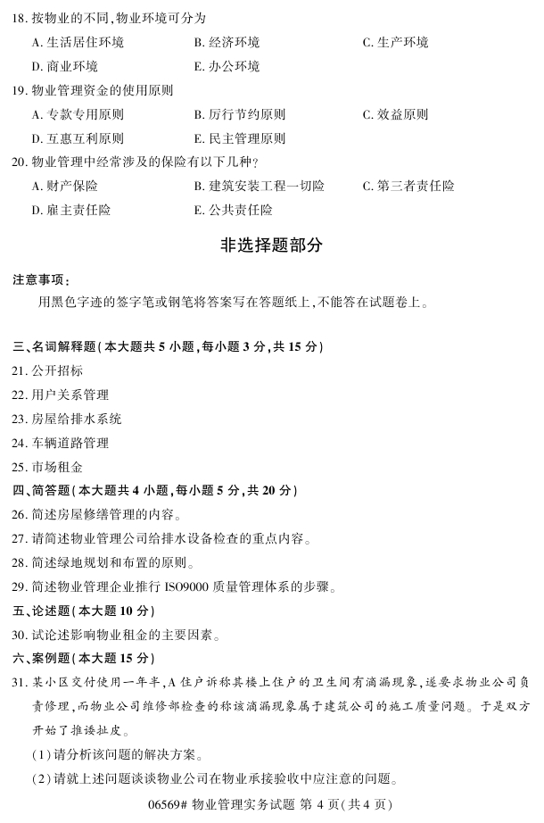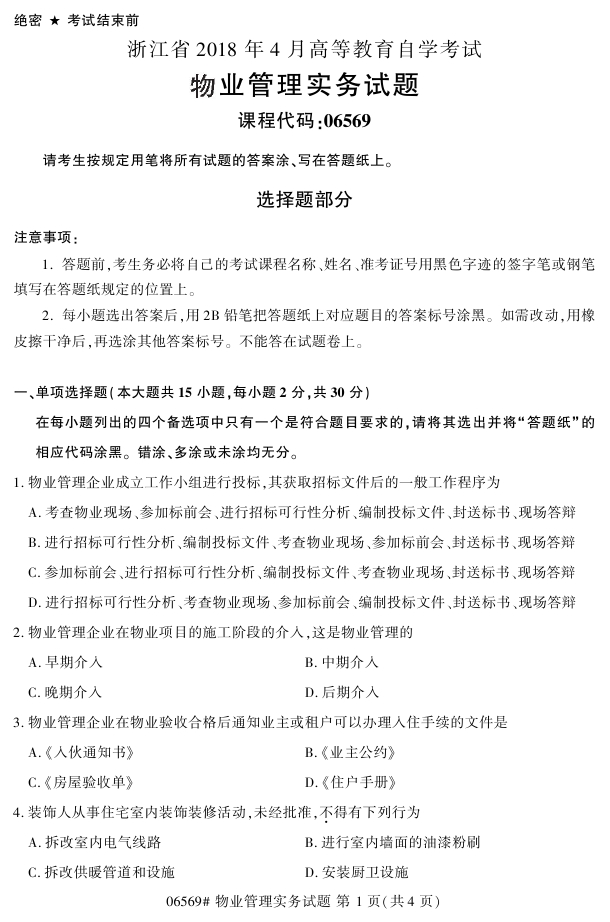 浙江省2018年4月高等教育自考06569物业管理实务试题PDF