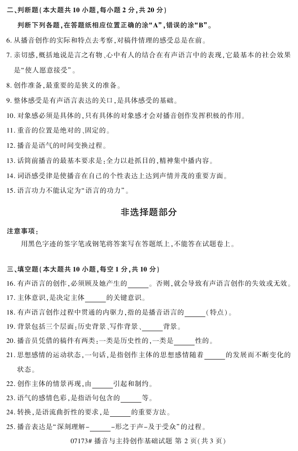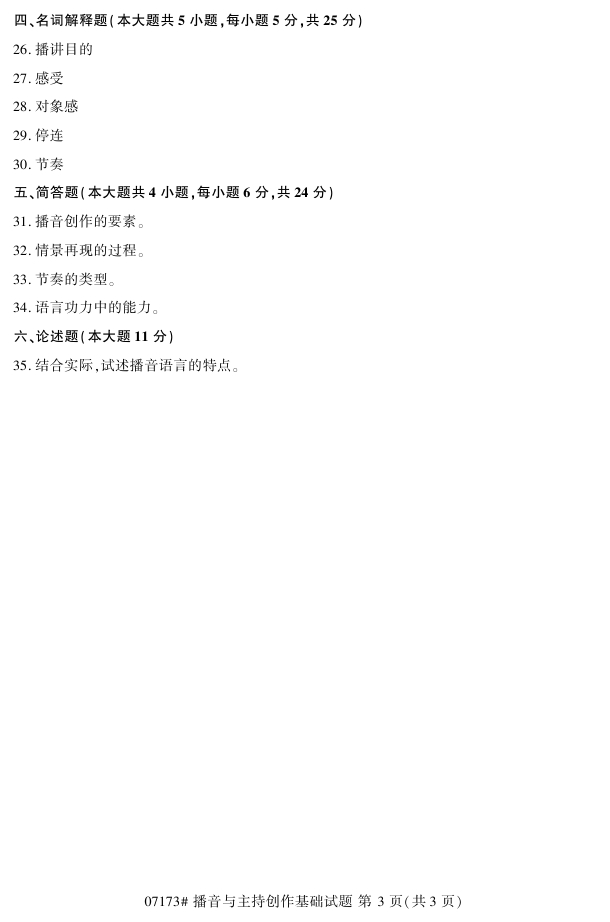 试题科目:播音与主持创作基础试题