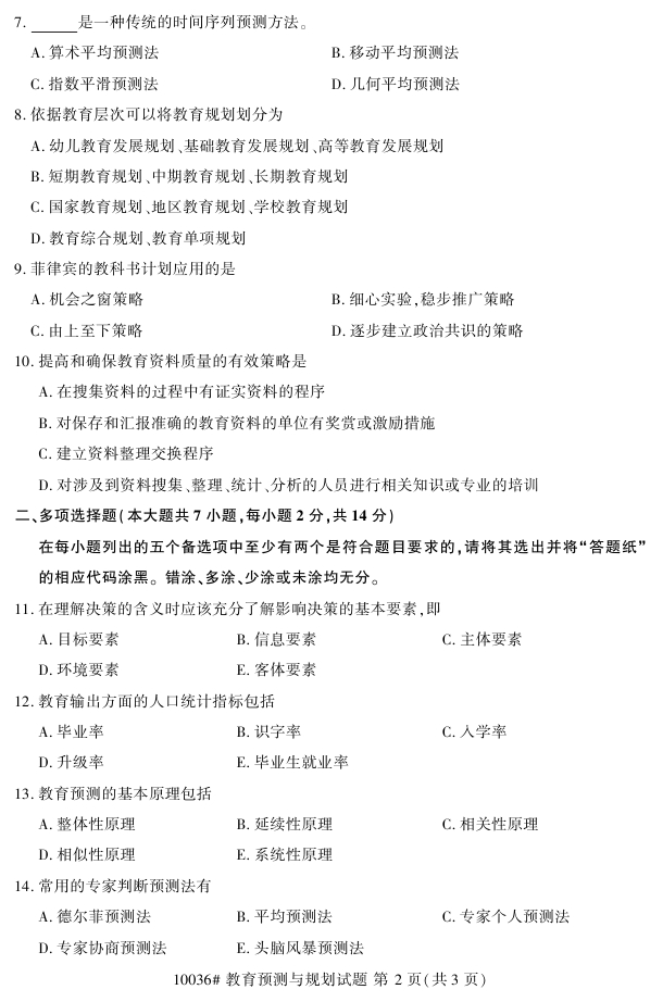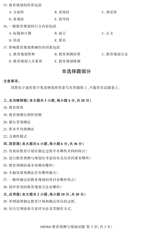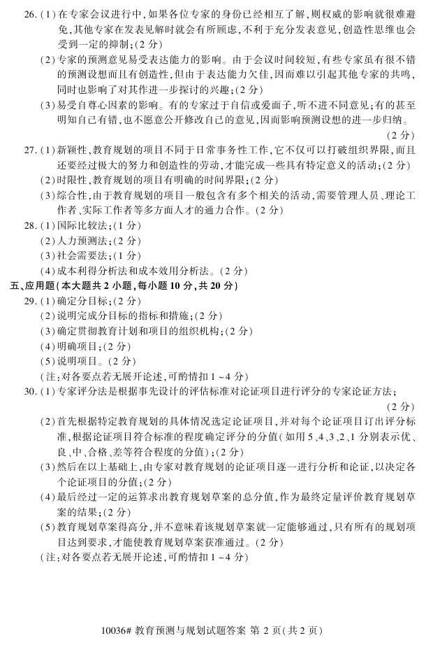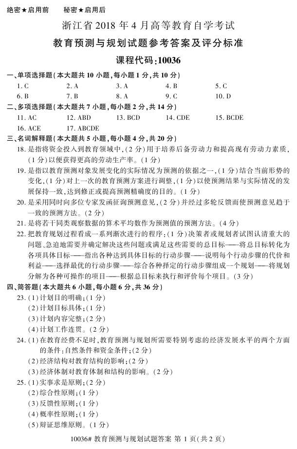 浙江省2018年4月高等教育自考10036教育预测与规划试题答案: