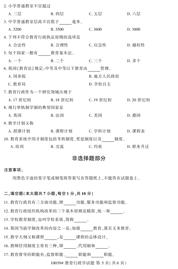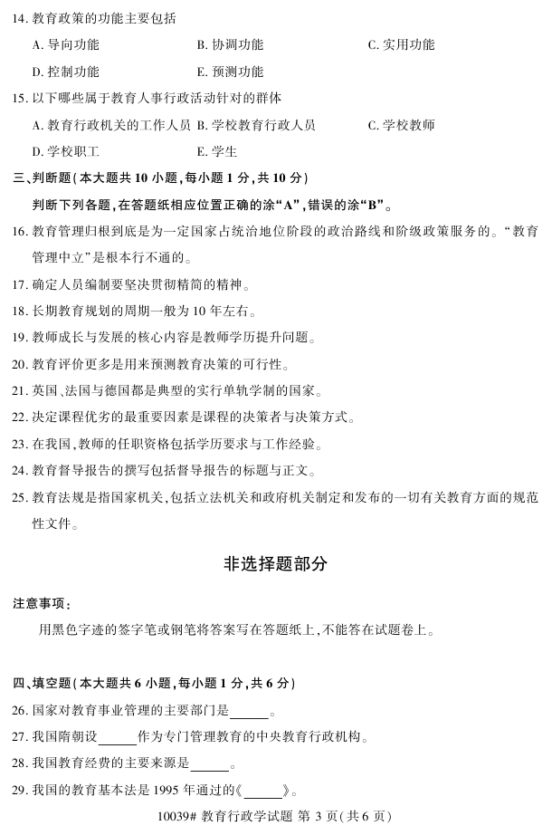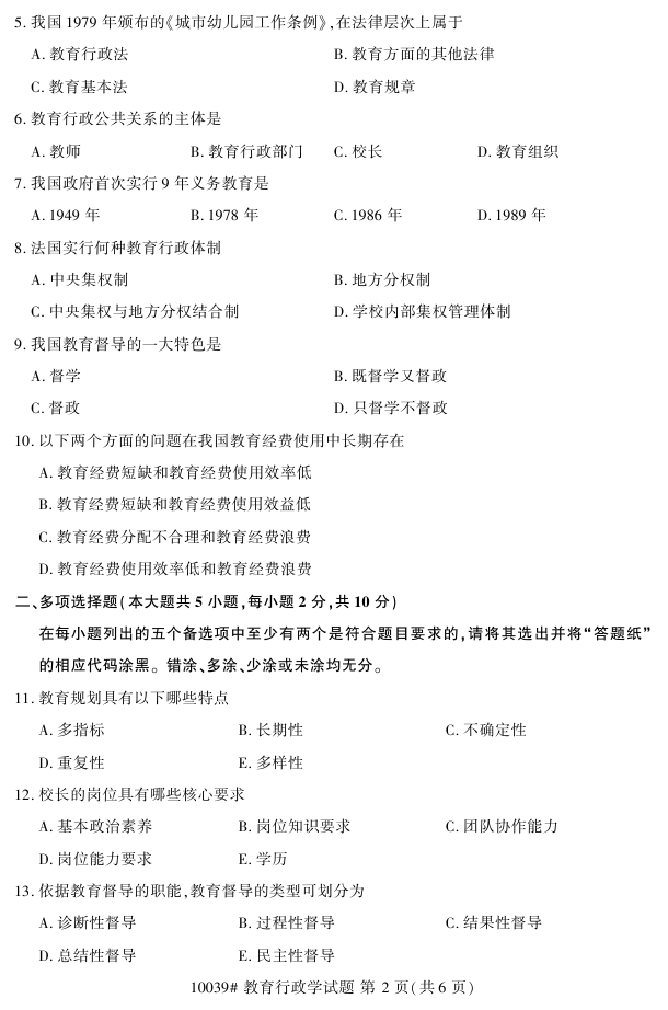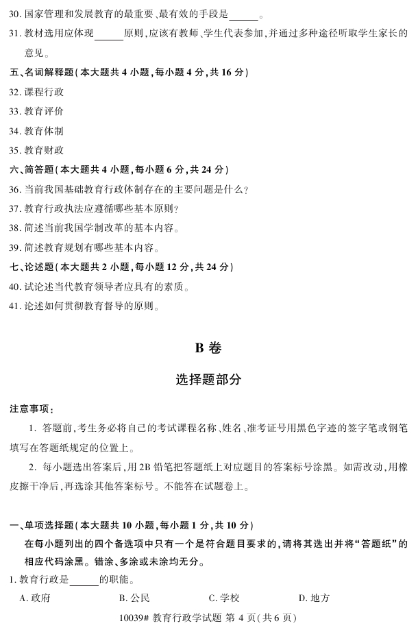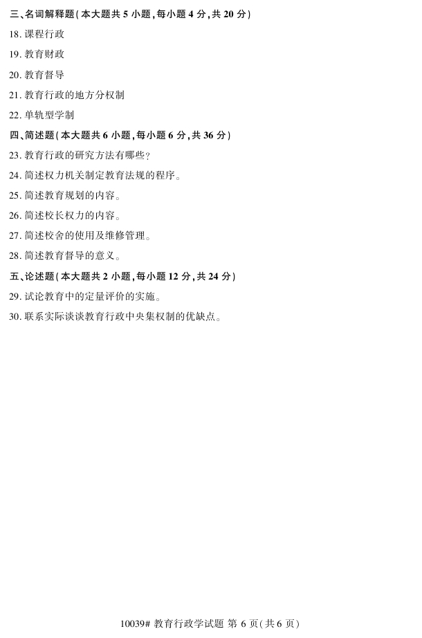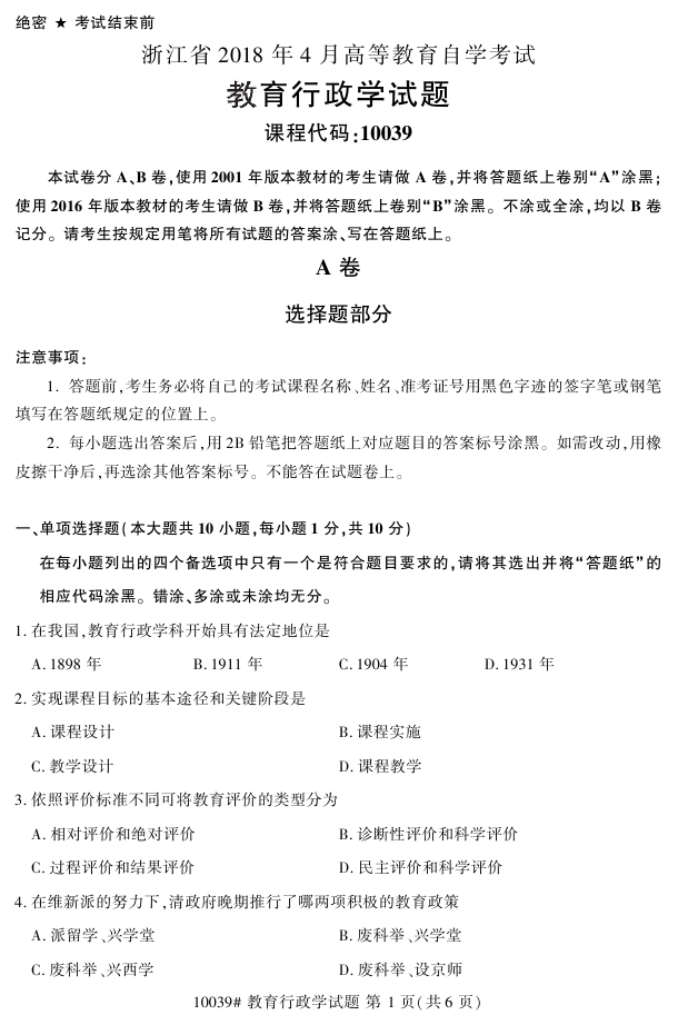 浙江省2018年4月高等教育自考10039教育行政学试题PDF