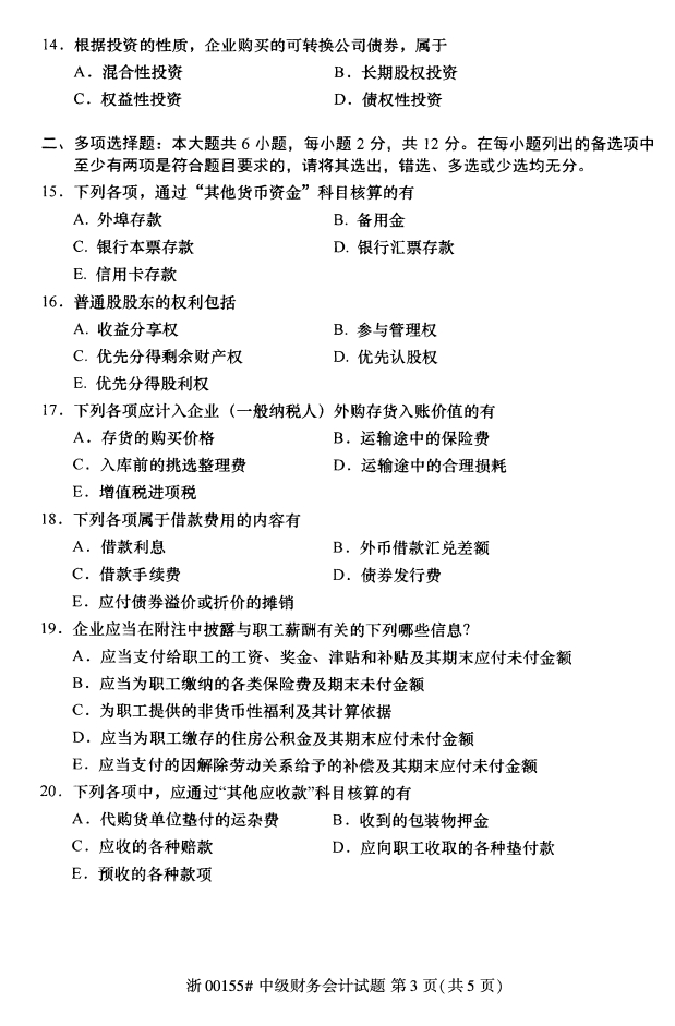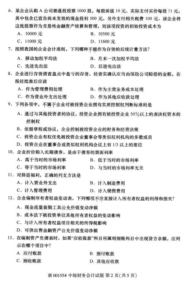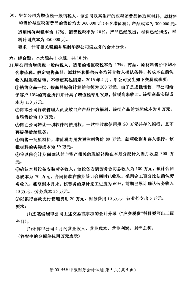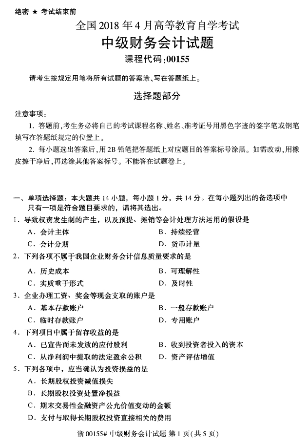全国2018年4月高等教育自考00155中级财务会计试题PDF