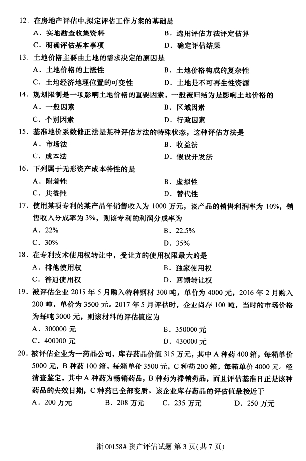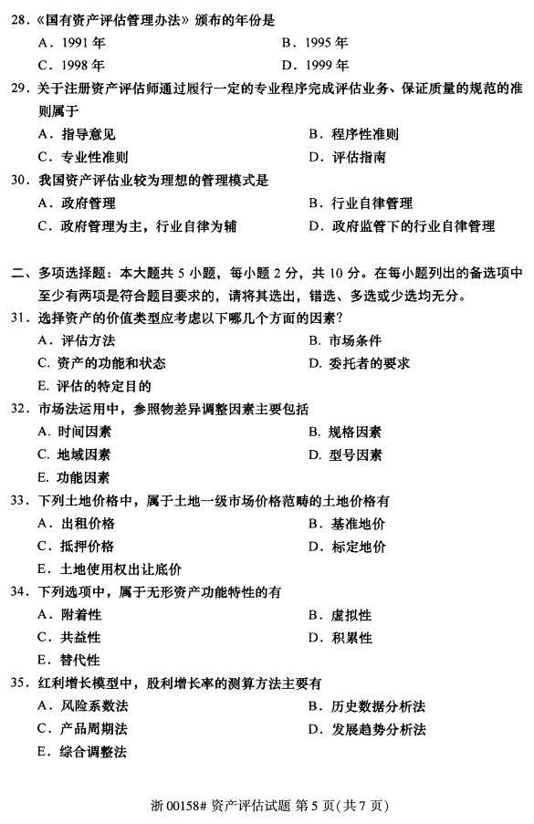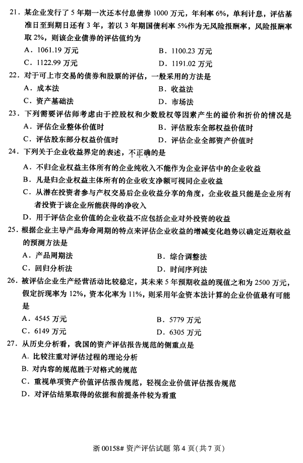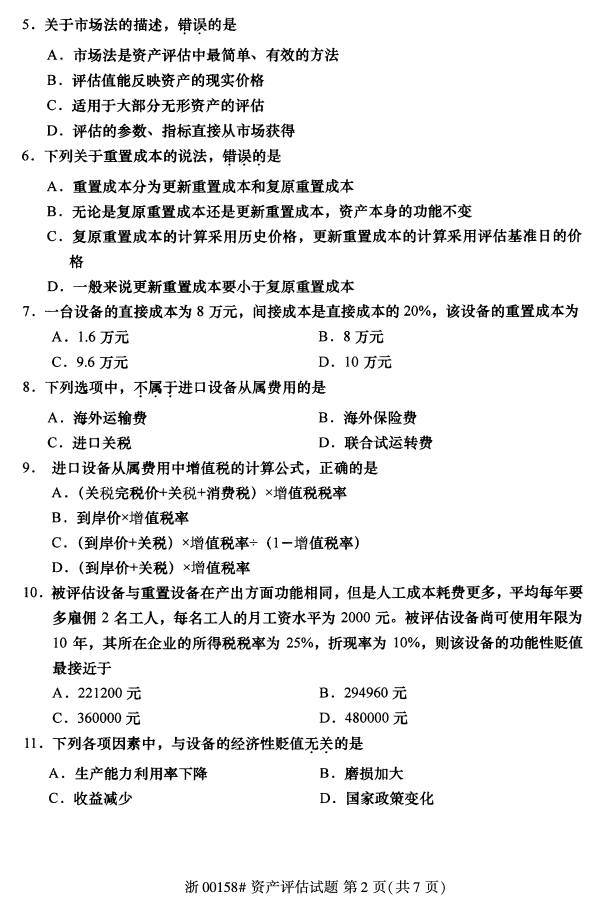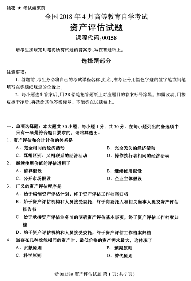 全国2018年4月高等教育自考00158资产评估试题PDF