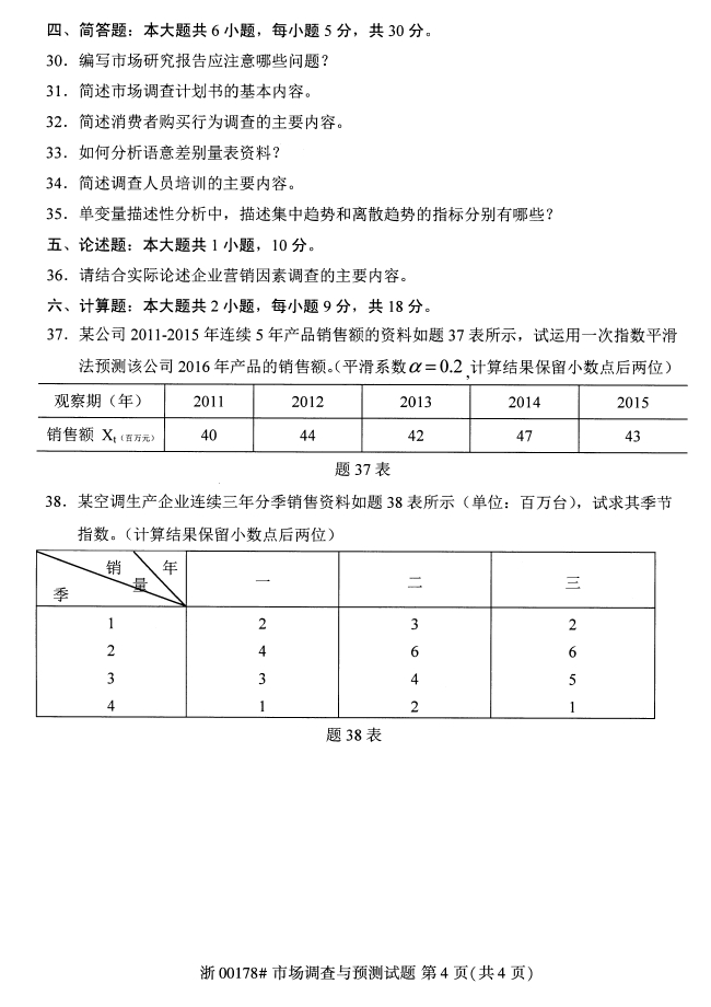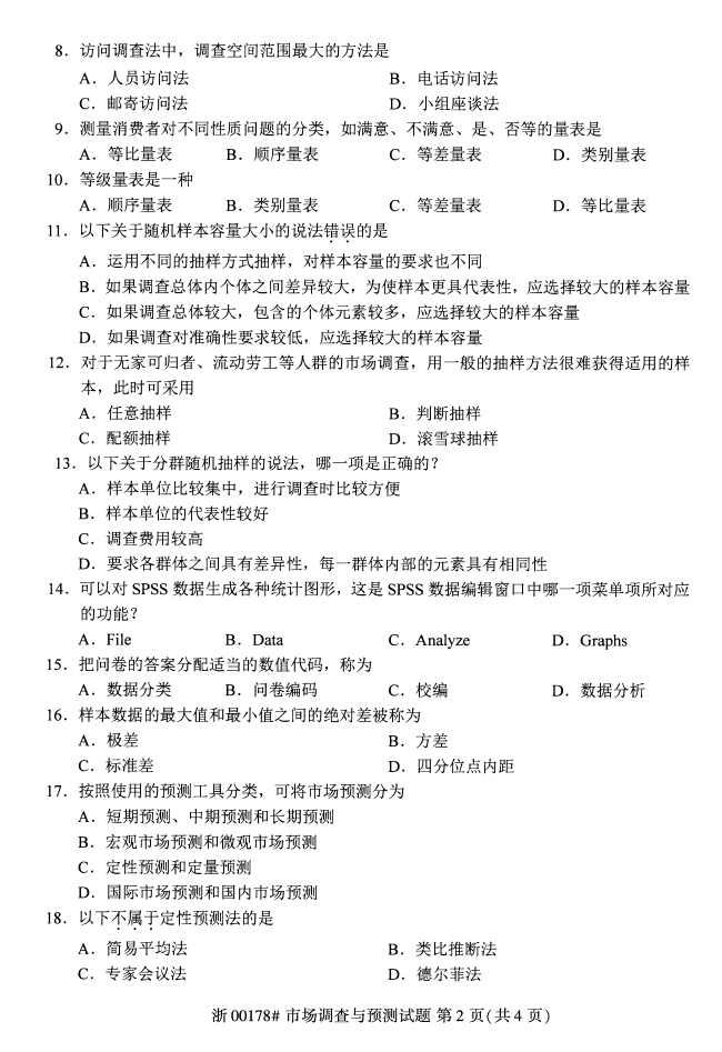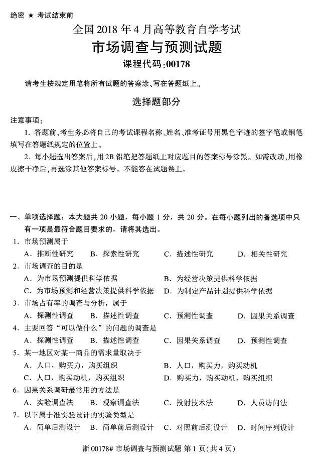 全国2018年4月高等教育自考00178市场调查与预测试题PDF