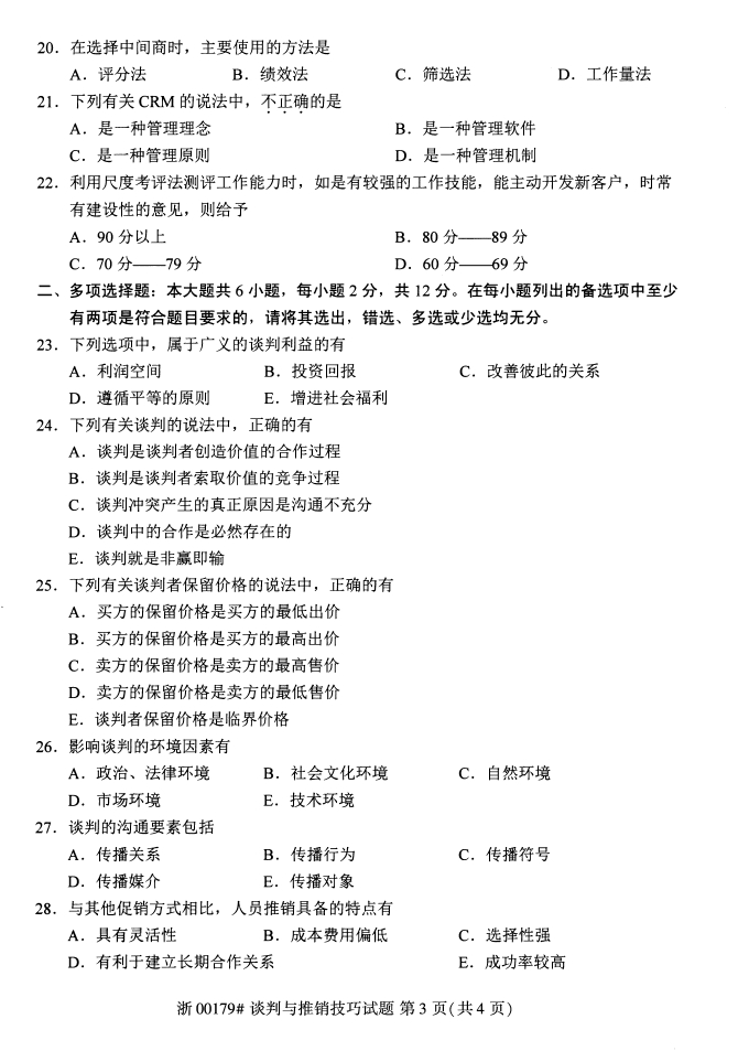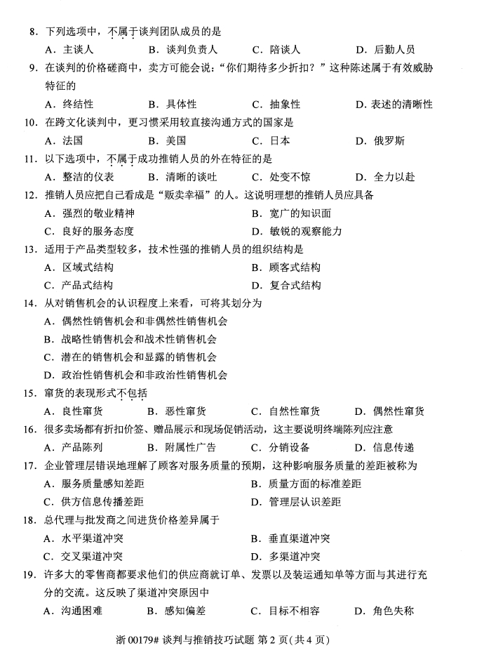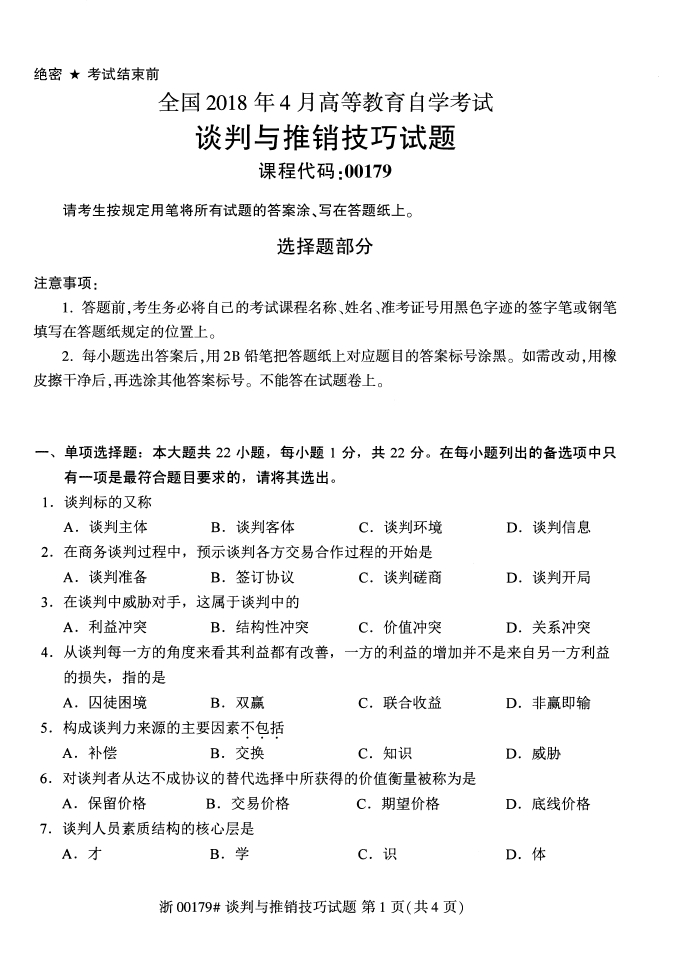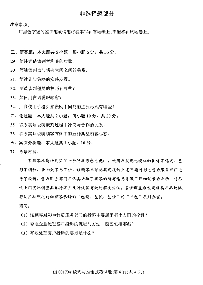 全国2018年4月高等教育自考00179谈判与推销技巧试题PDF