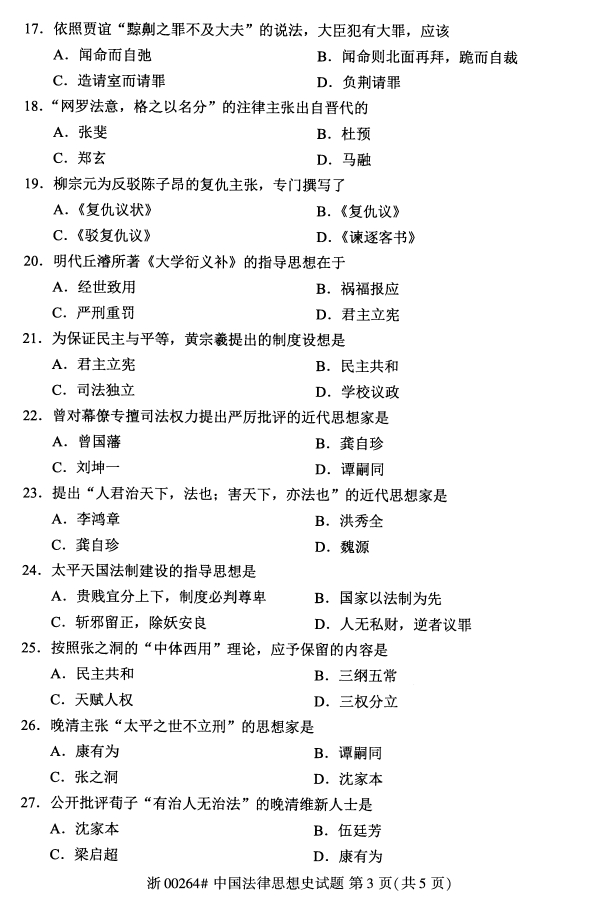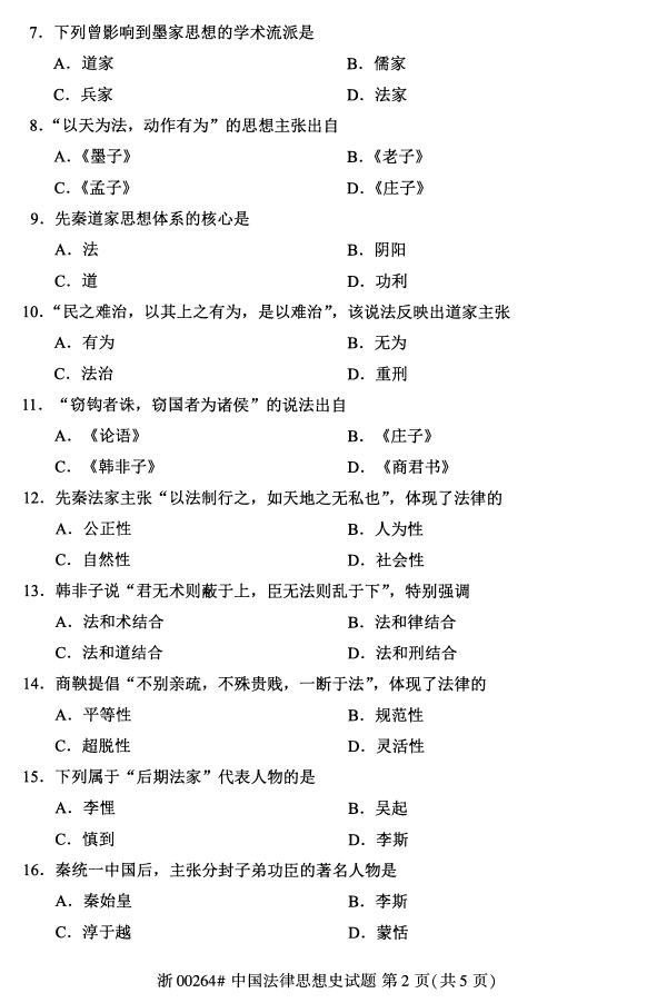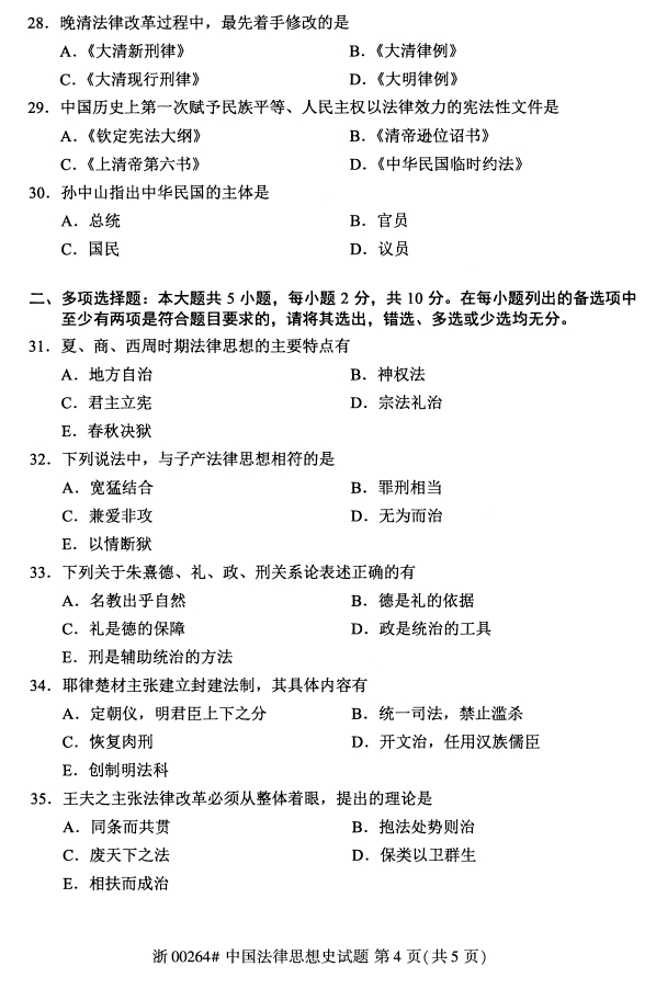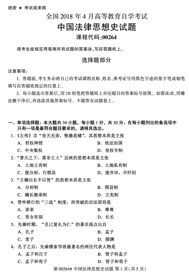 全国2018年4月高等教育自考00264中国法律思想史试题PDF