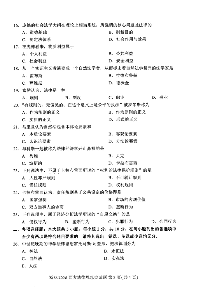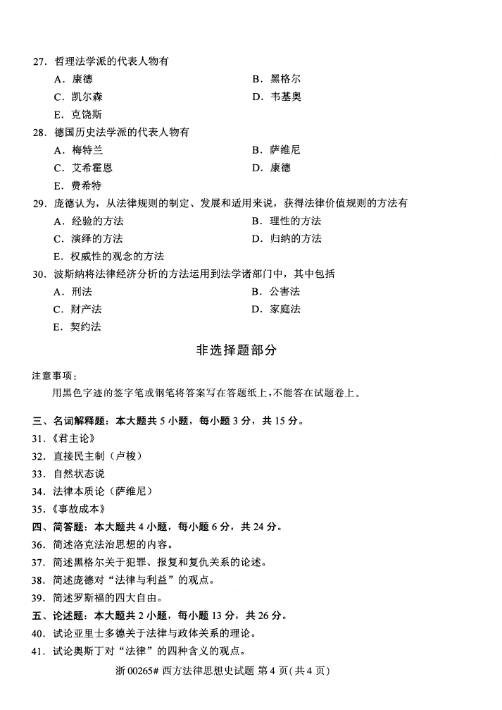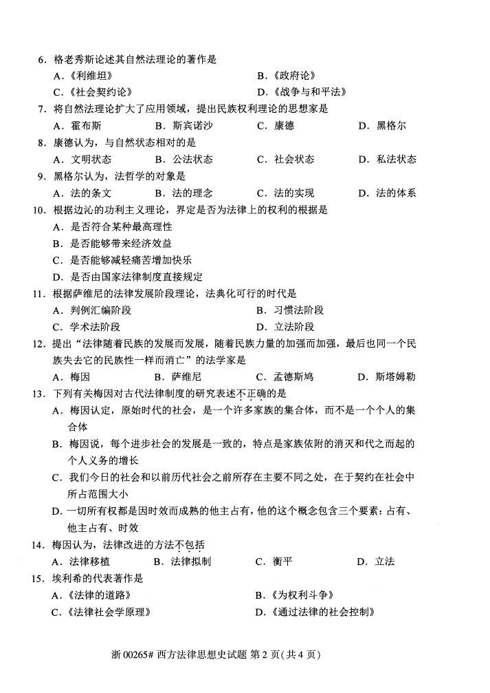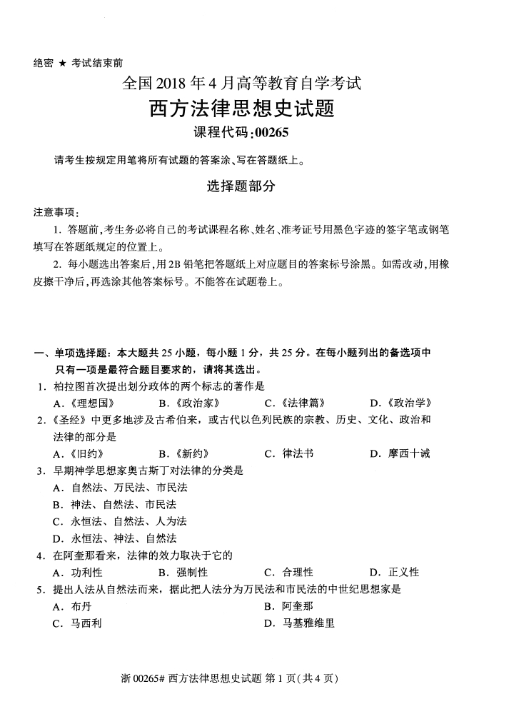 全国2018年4月高等教育自考00265西方法律思想史试题PDF