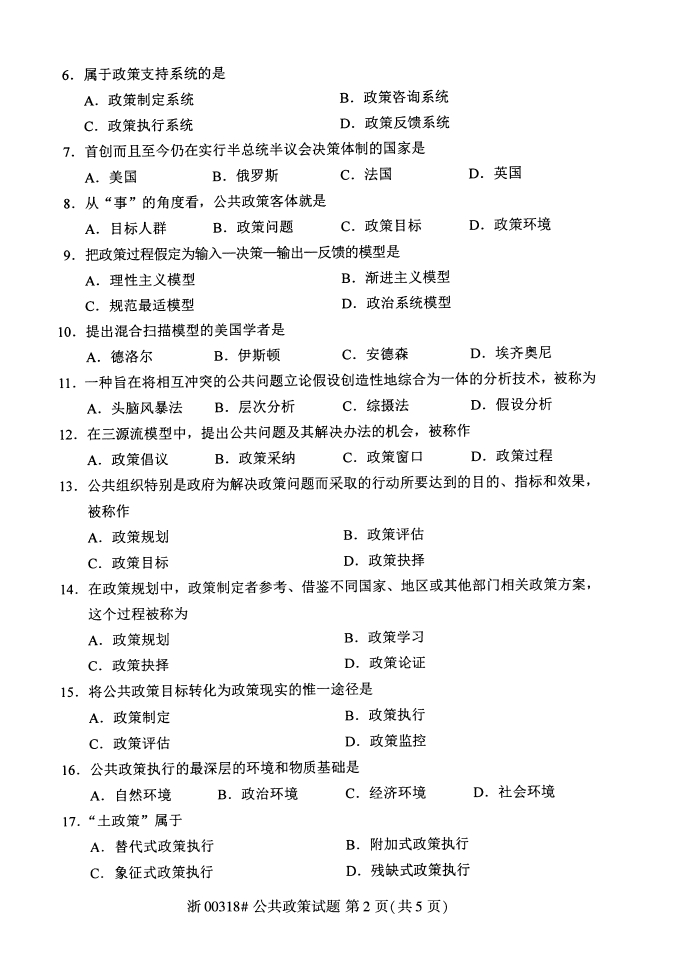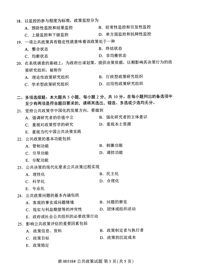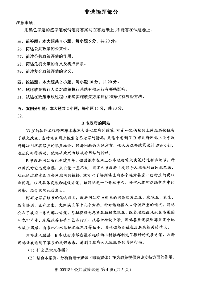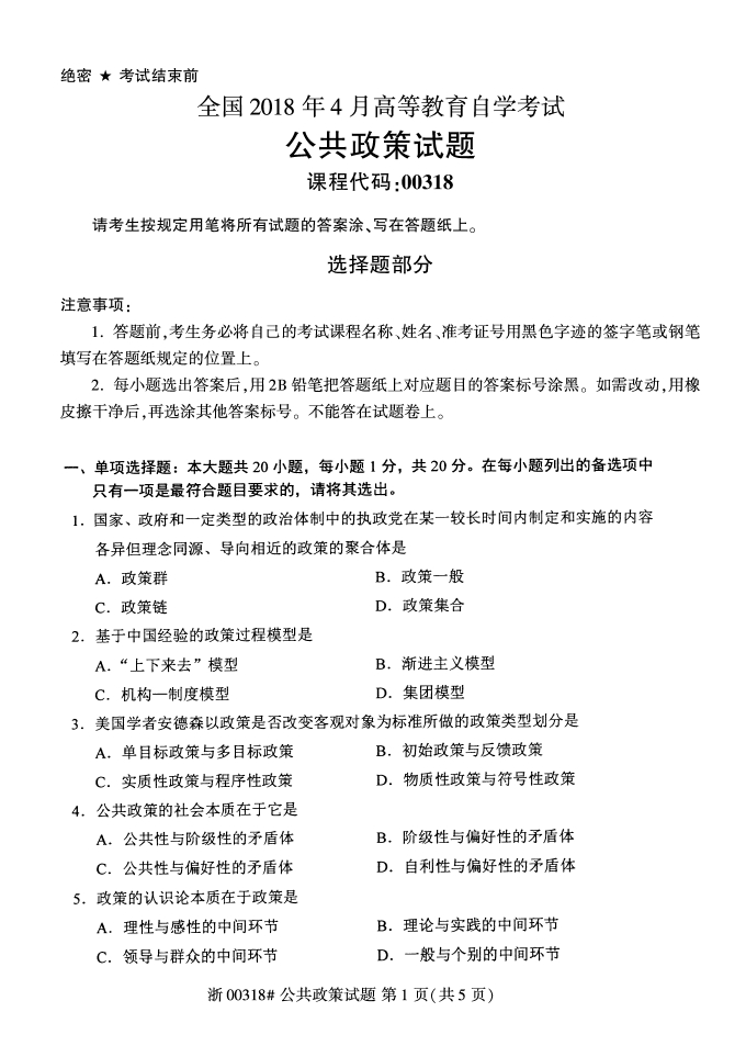全国2018年4月高等教育自考00318公共政策试题PDF