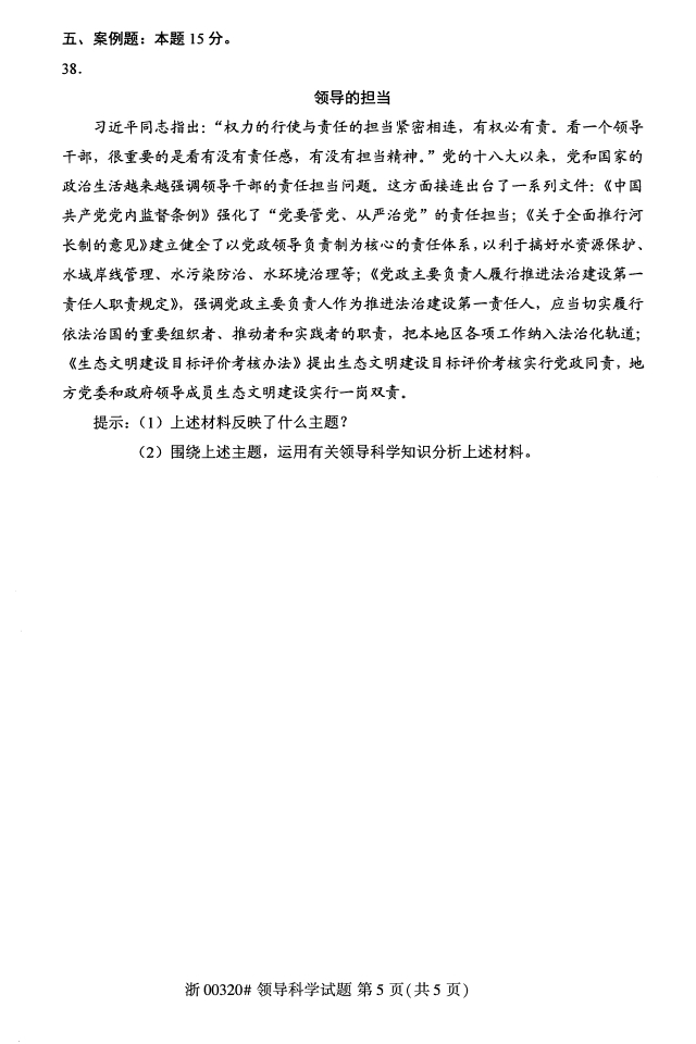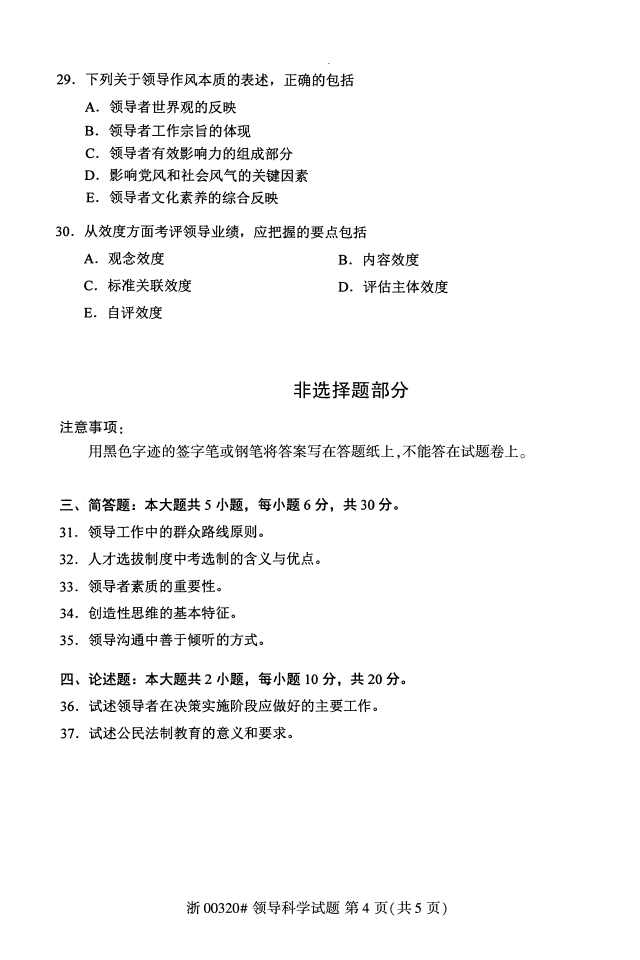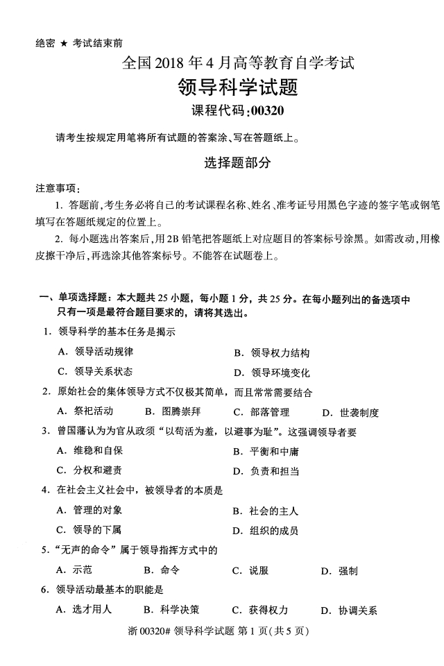 全国2018年4月高等教育自考00320领导科学试题PDF