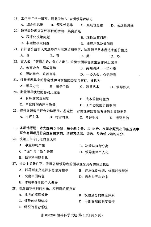 领导科学试题
