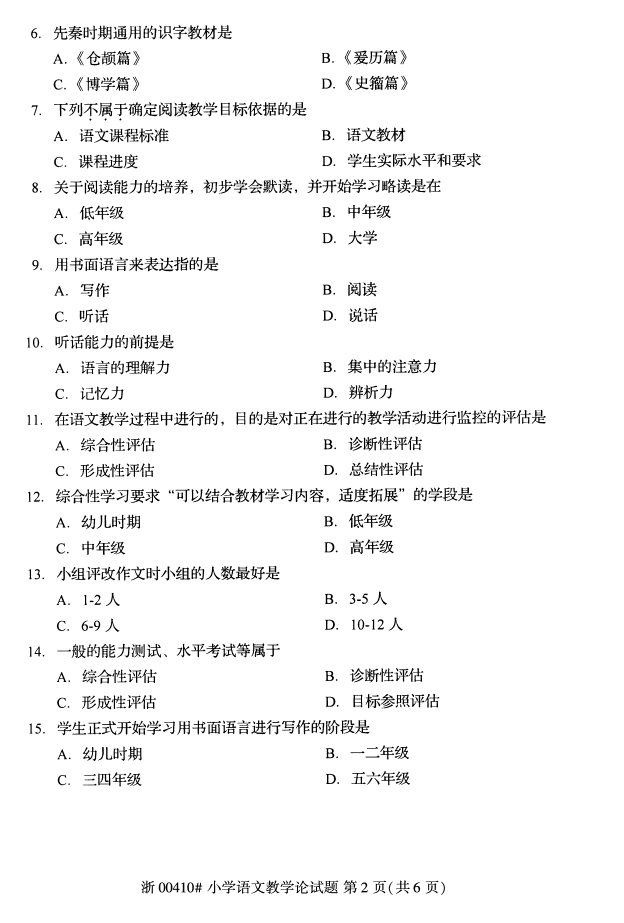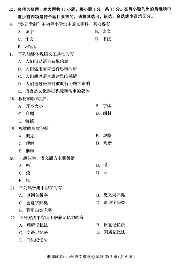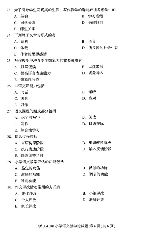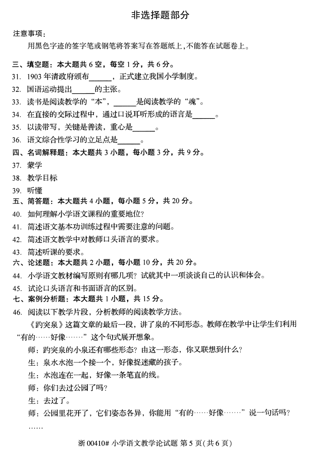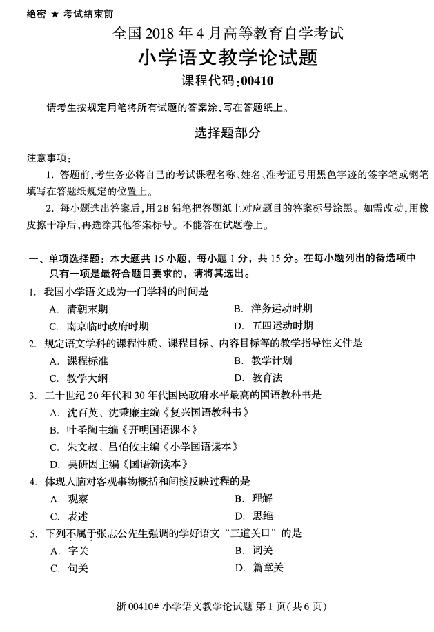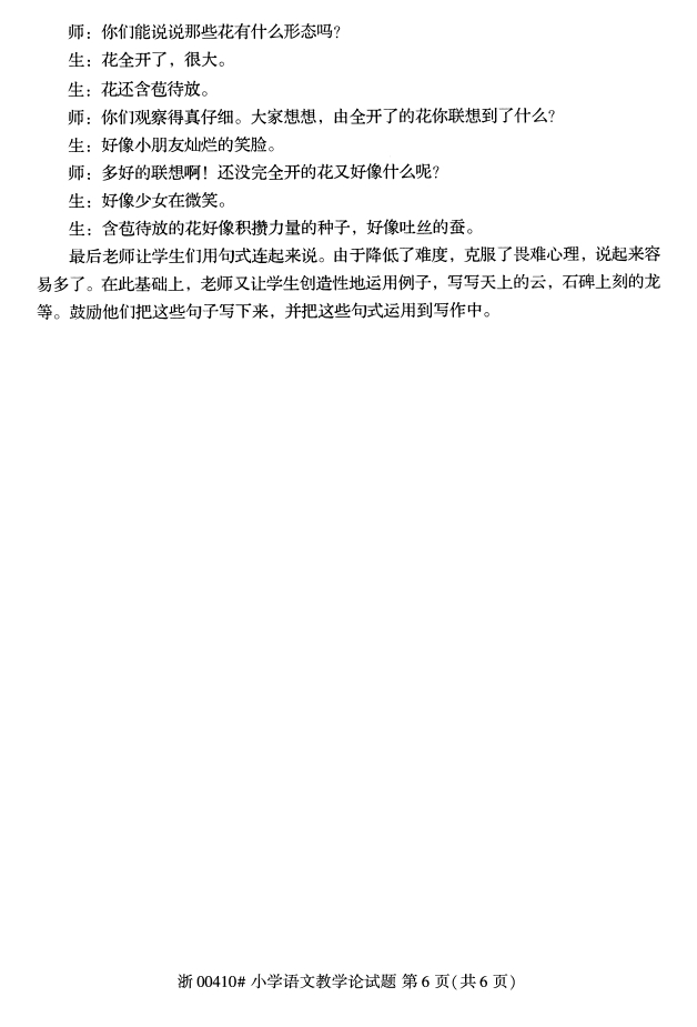 全国2018年4月高等教育自考00410小学语文教学论试题PDF