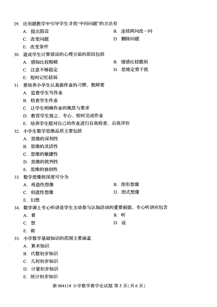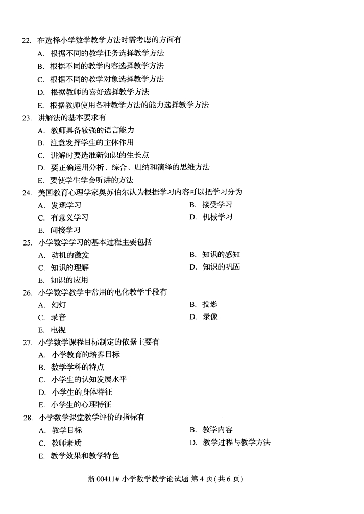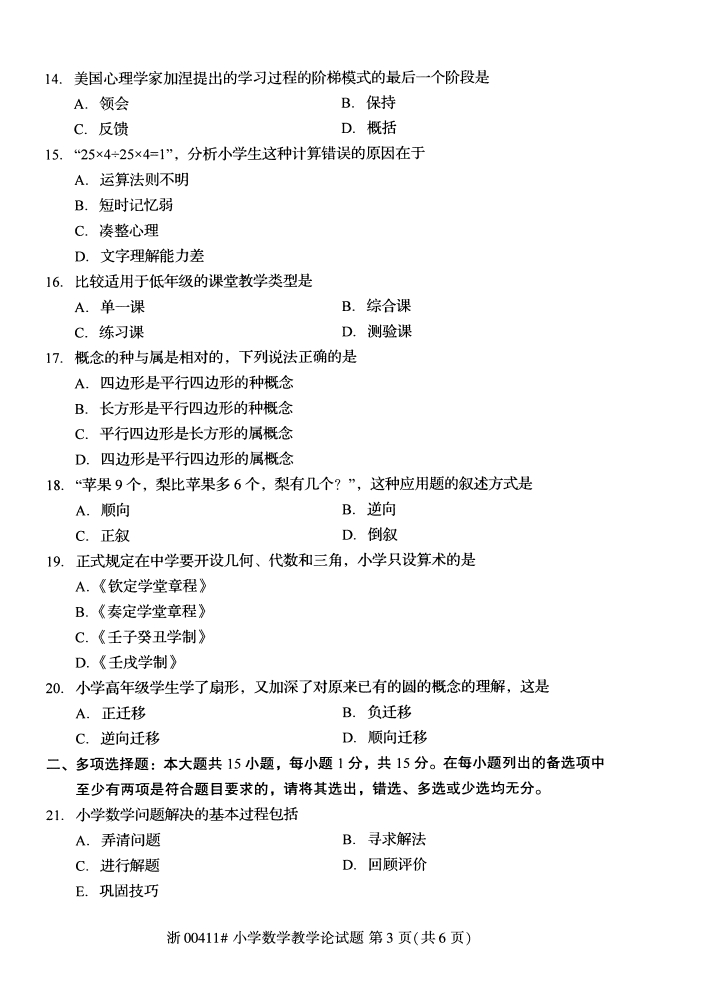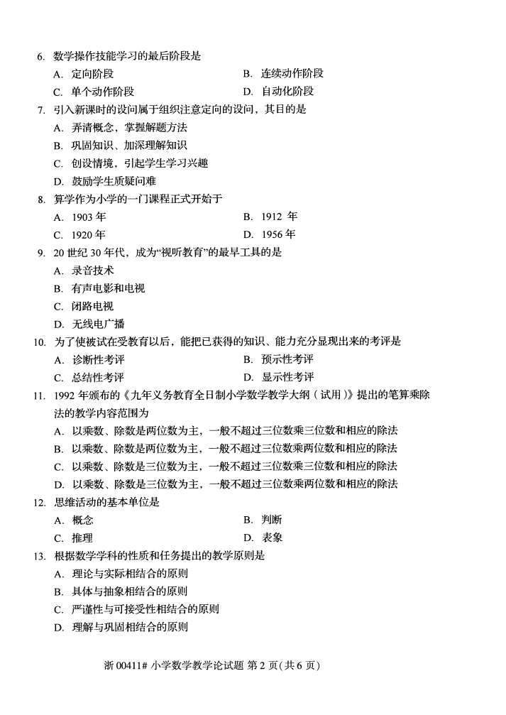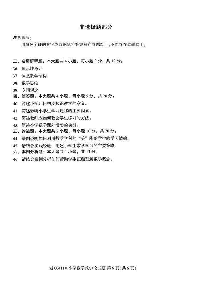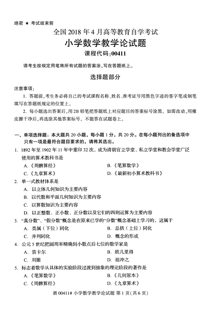 全国2018年4月高等教育自考00411小学数学教学论试题PDF