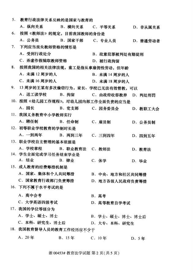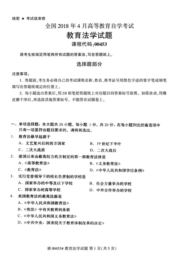 全国2018年4月高等教育自考00453教育法学试题PDF
