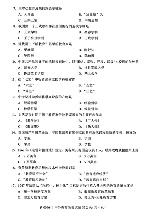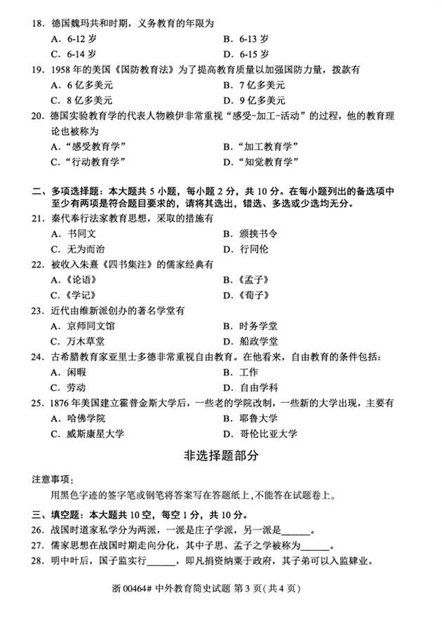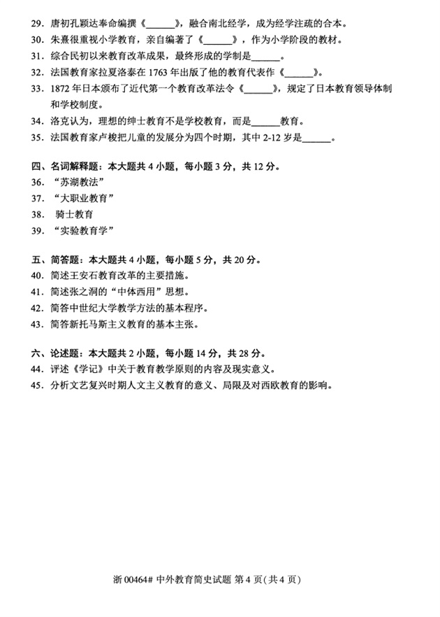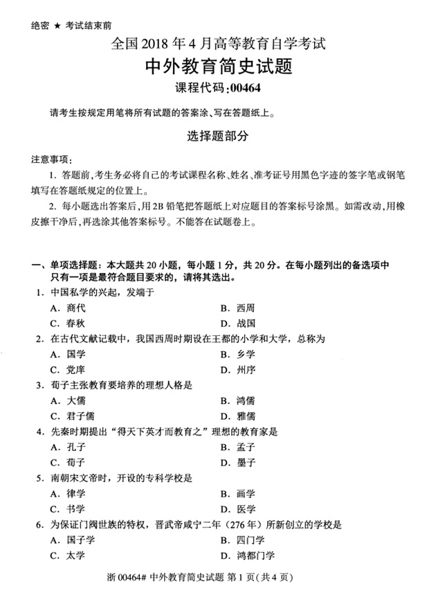 全国2018年4月高等教育自考00464中外教育简史试题PDF