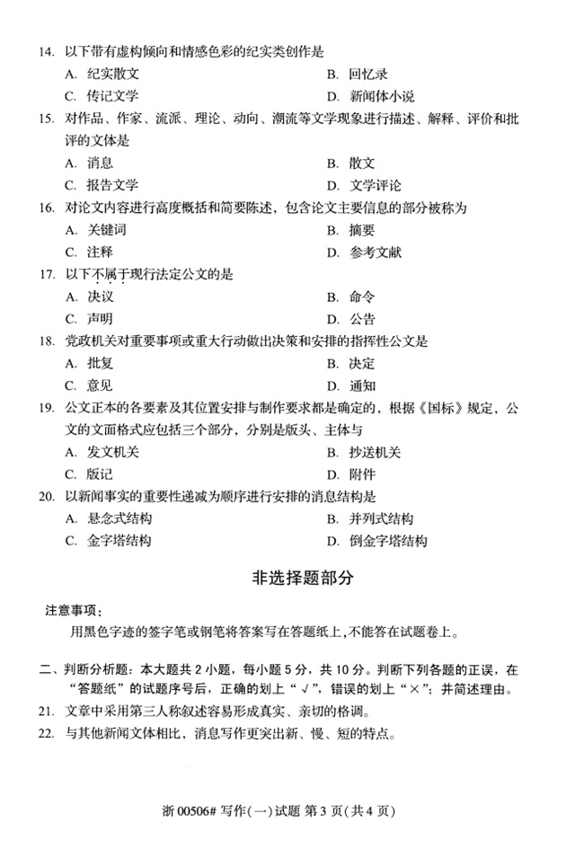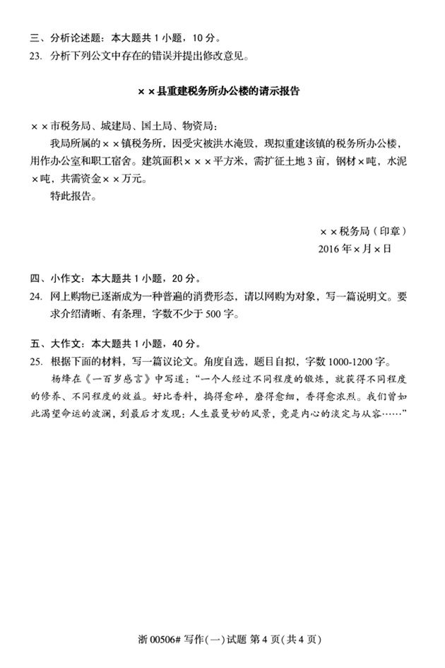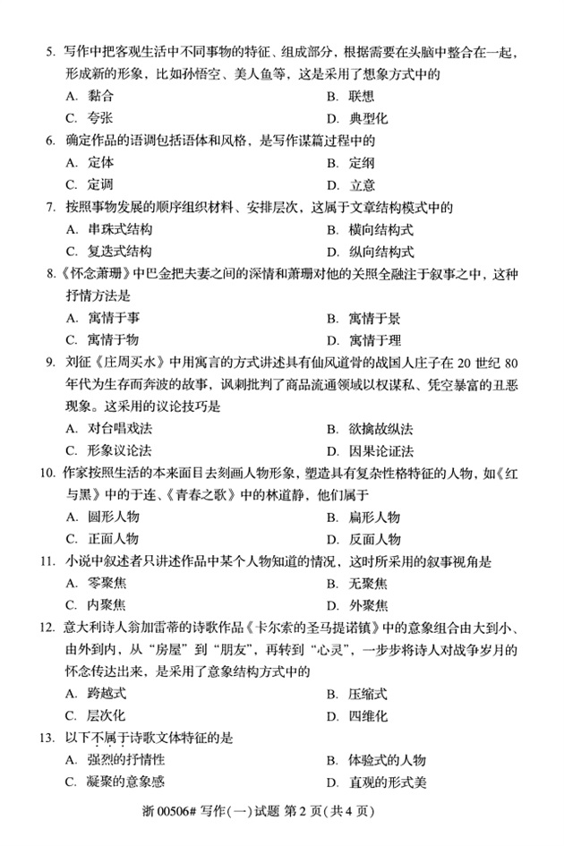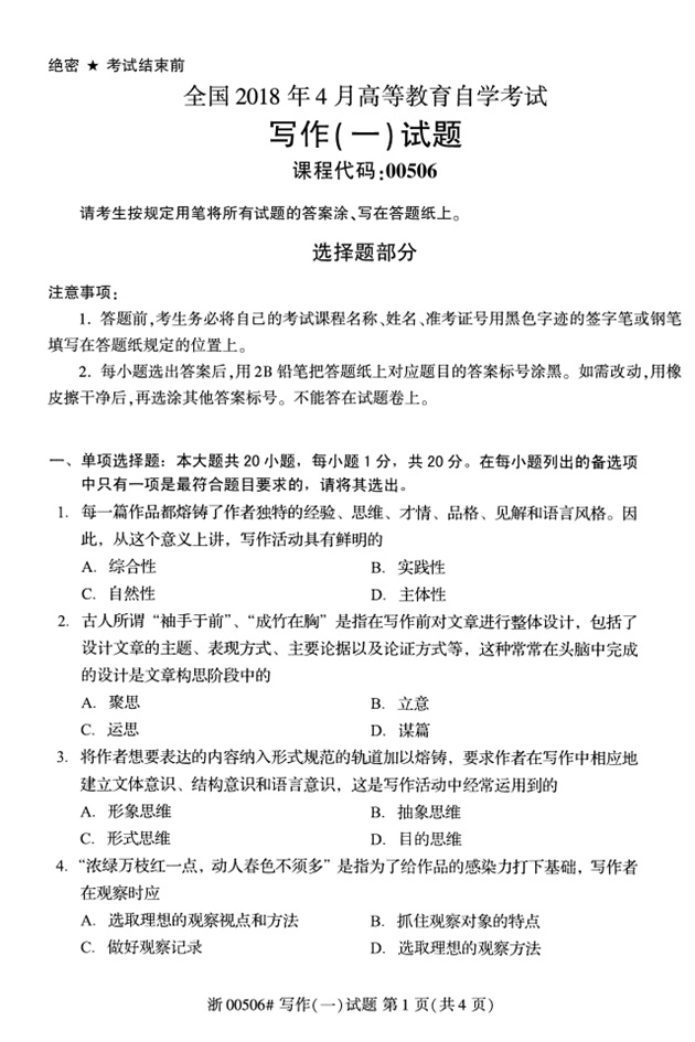 全国2018年4月高等教育自考00506写作(一)试题PDF