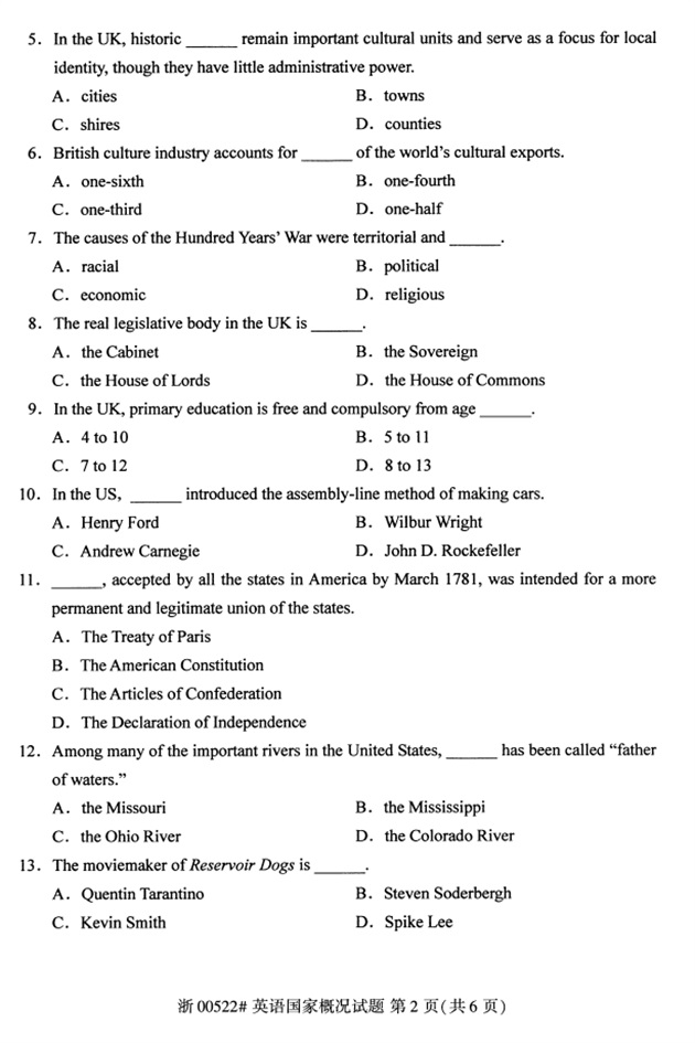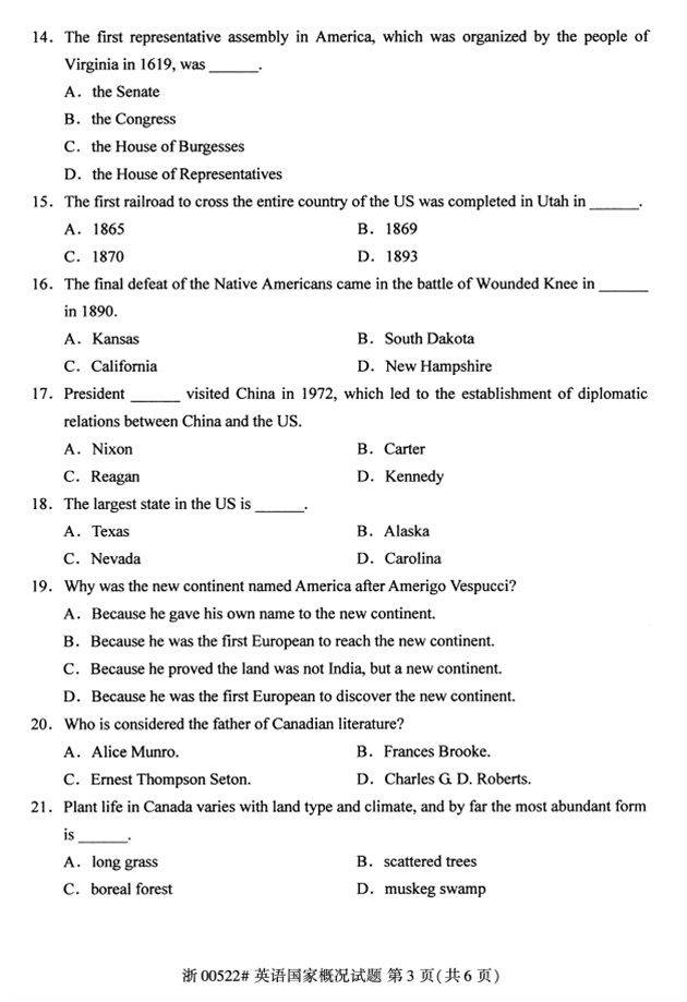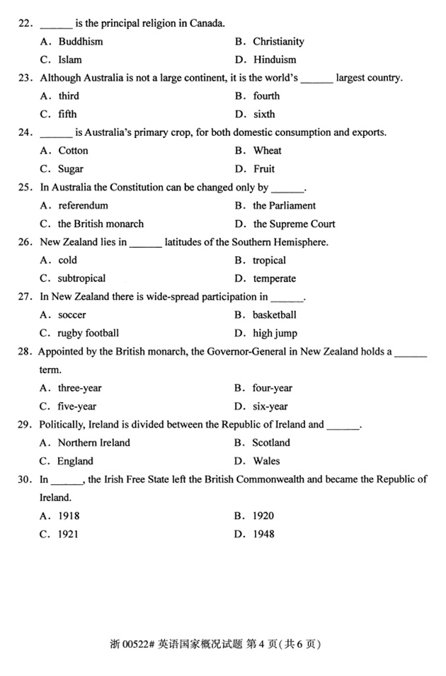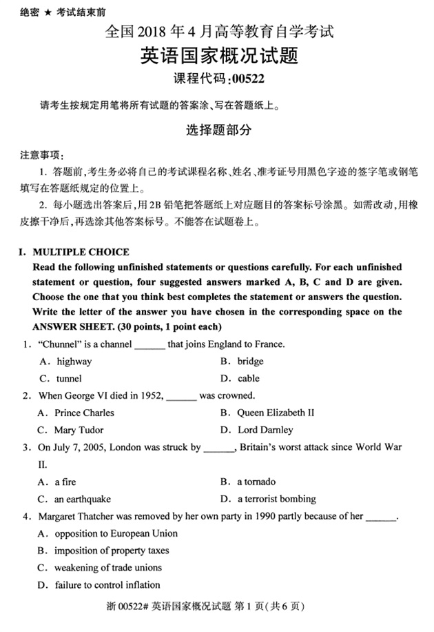 全国2018年4月高等教育自考00522英语国家概况试题PDF