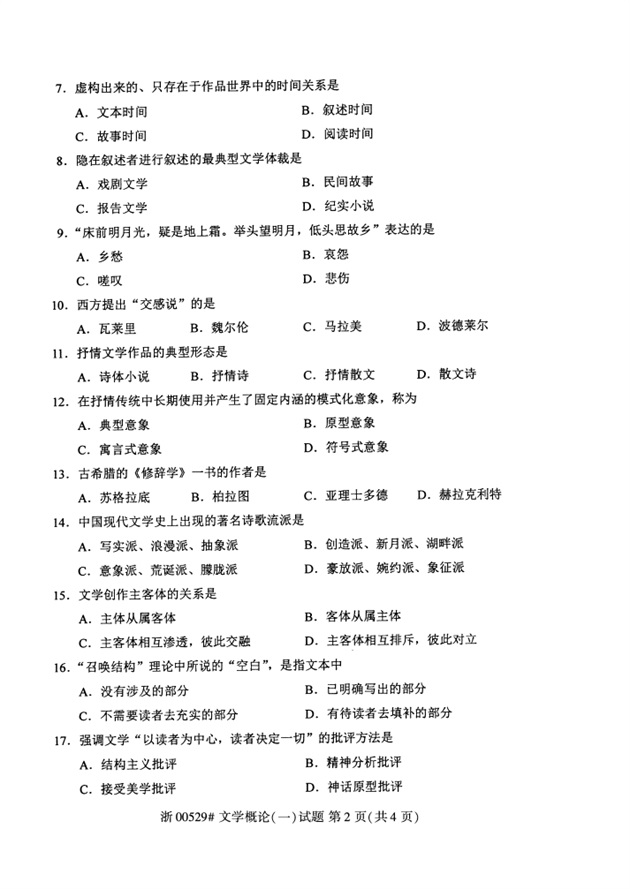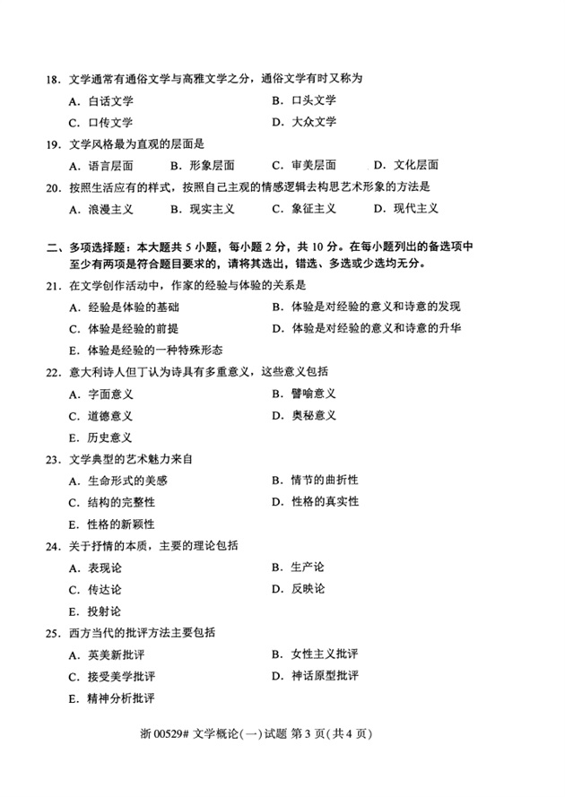 文学概论(一)试题