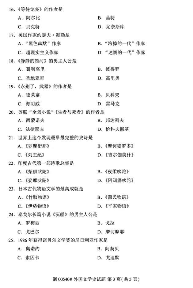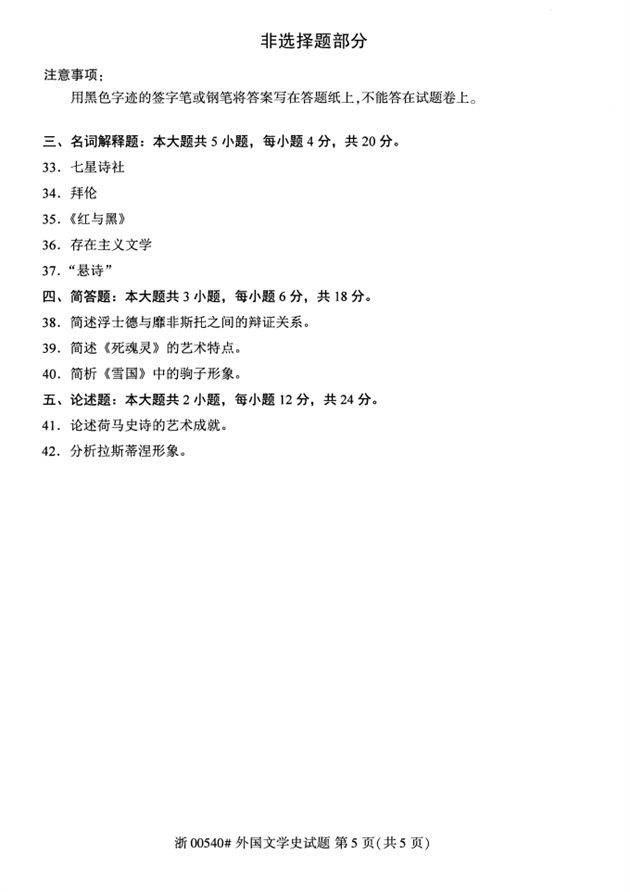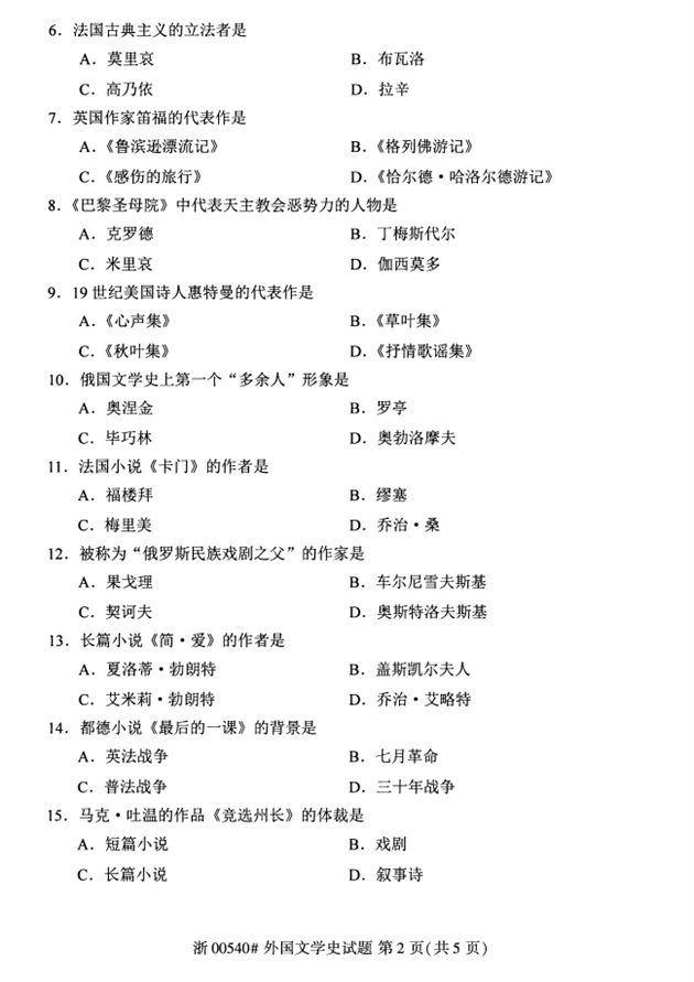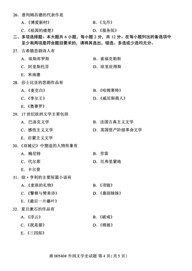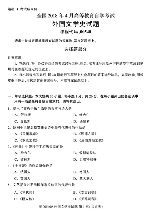 全国2018年4月高等教育自考00540外国文学史试题PDF
