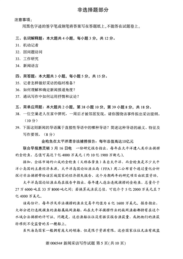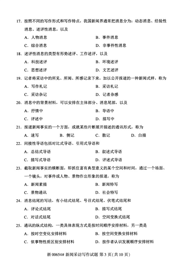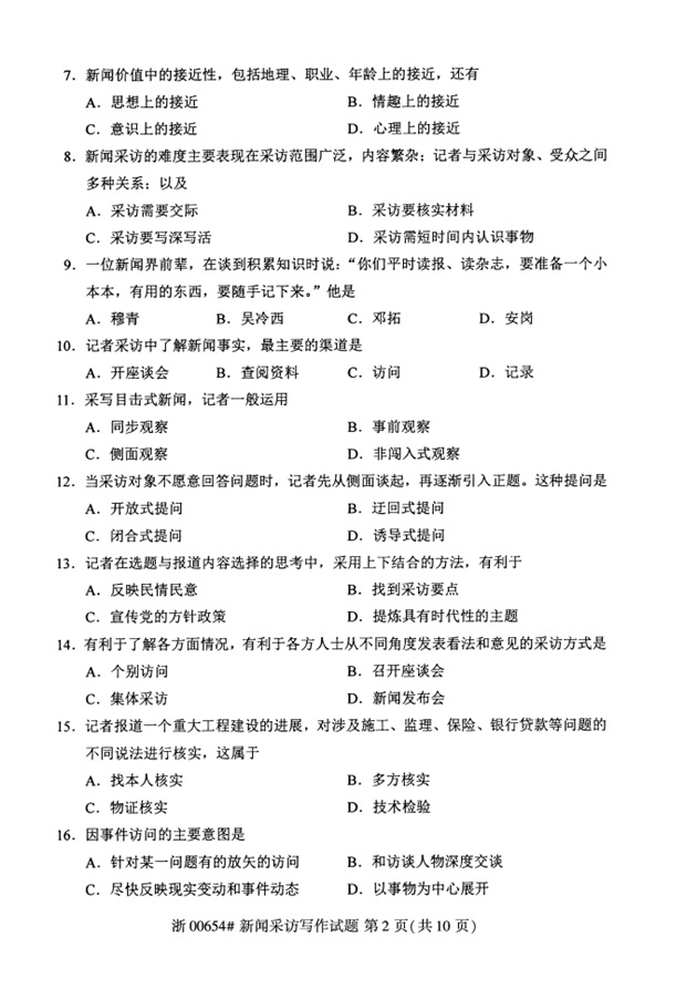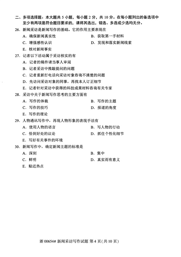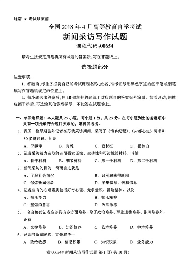 全国2018年4月高等教育自考00654新闻采访写作试题PDF