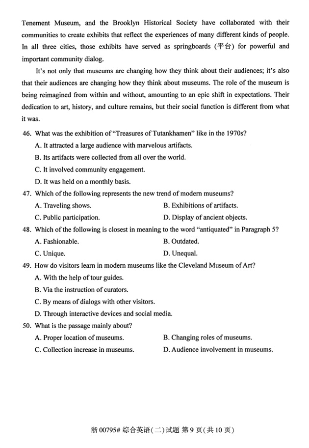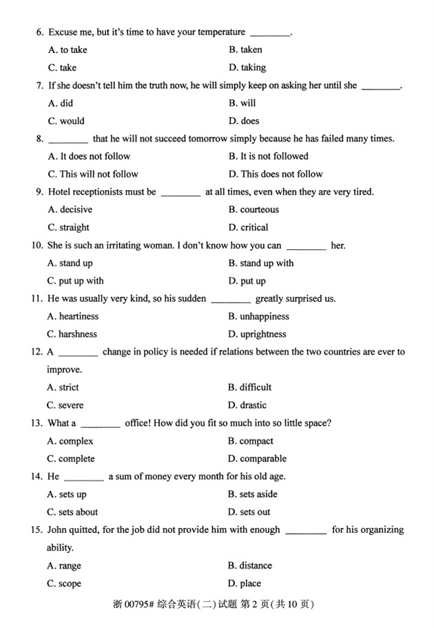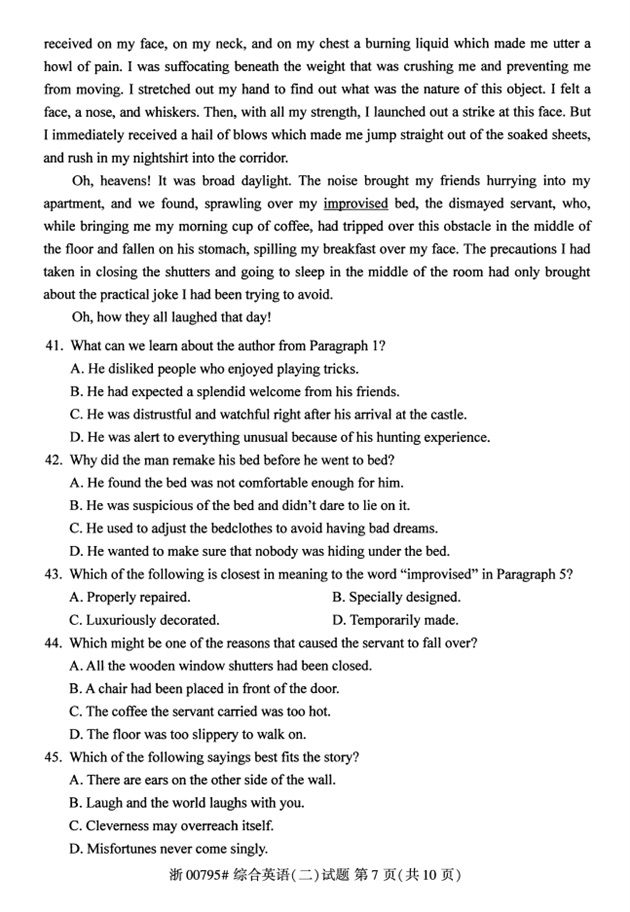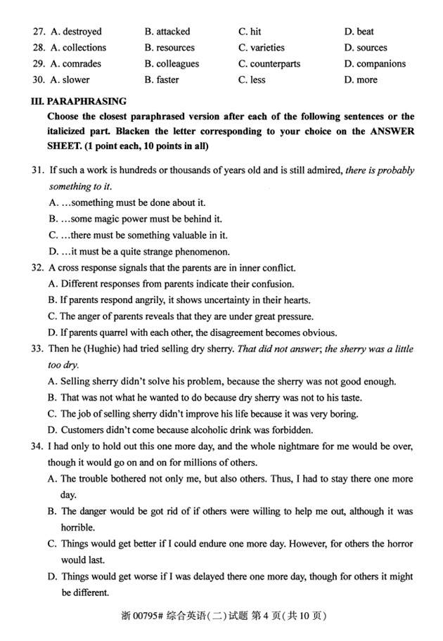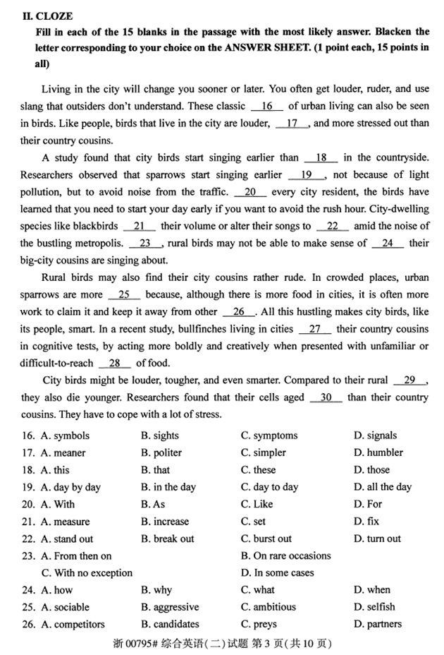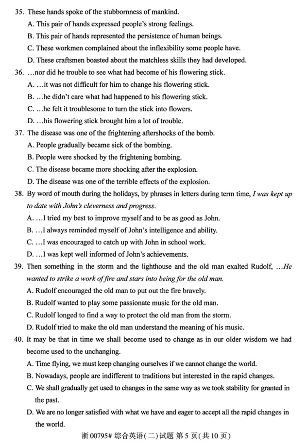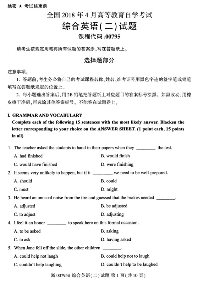 全国2018年4月高等教育自考00795综合英语(二)试题PDF