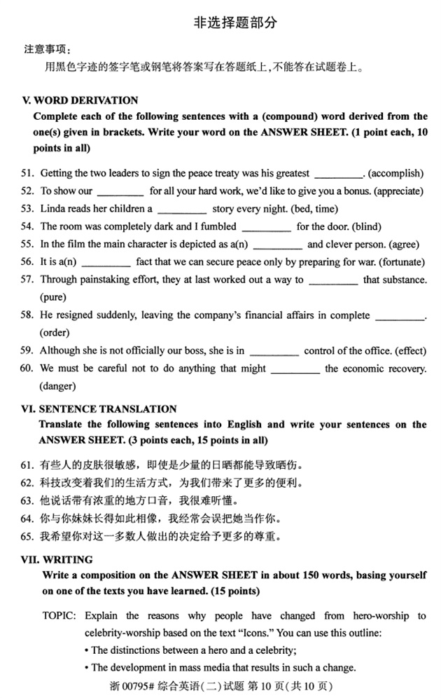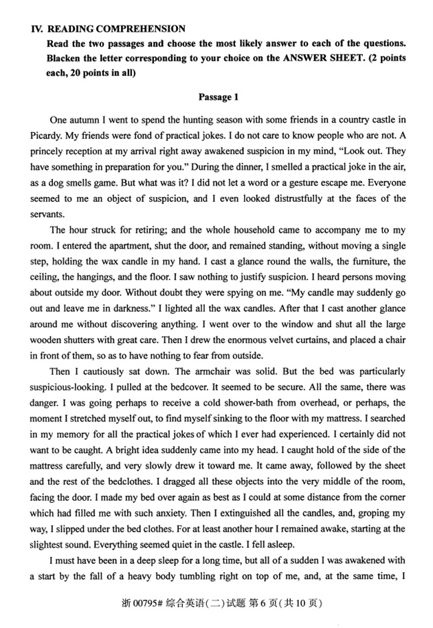 全国2018年4月高等教育自考00795综合英语(二)试题