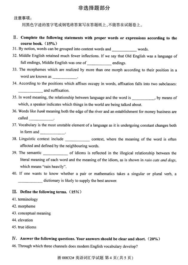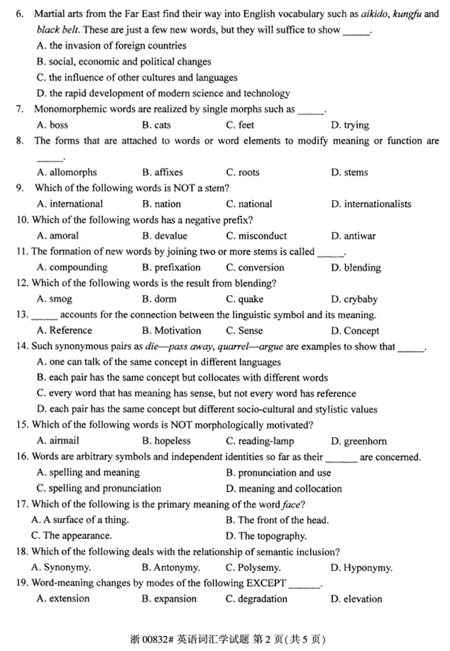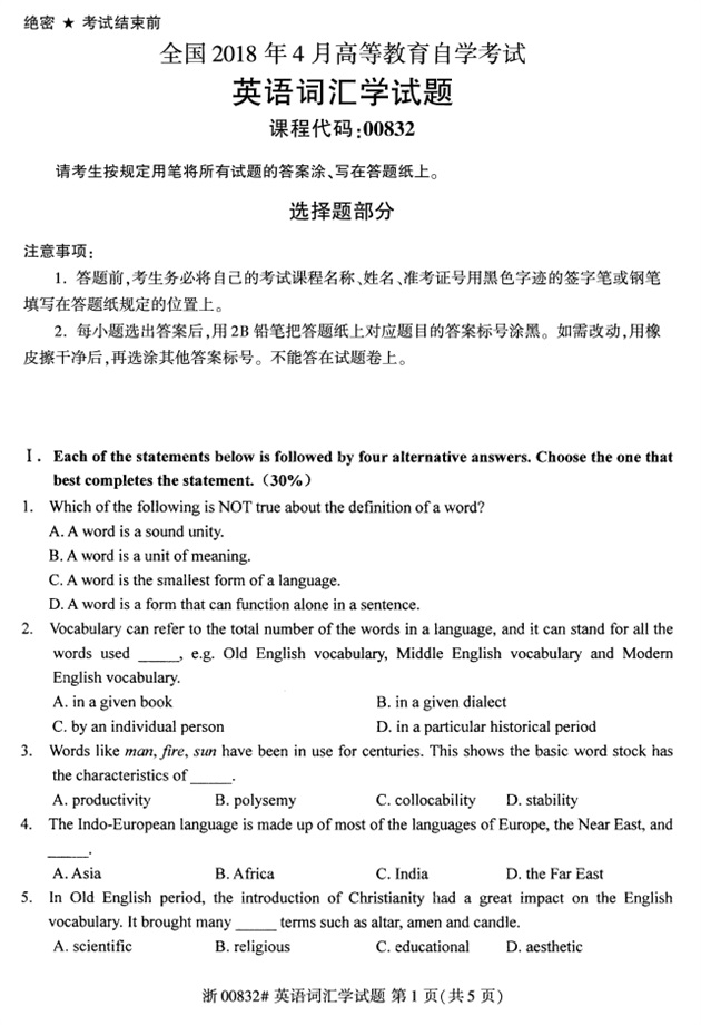 全国2018年4月高等教育自考00832英语词汇学试题PDF
