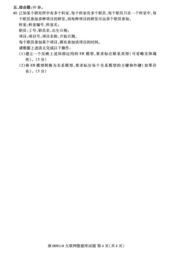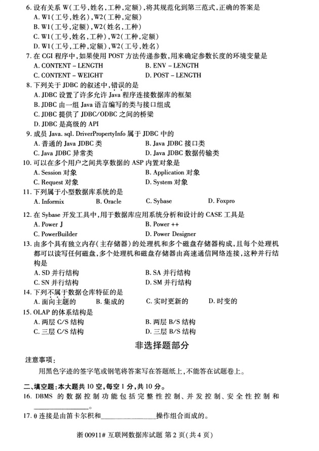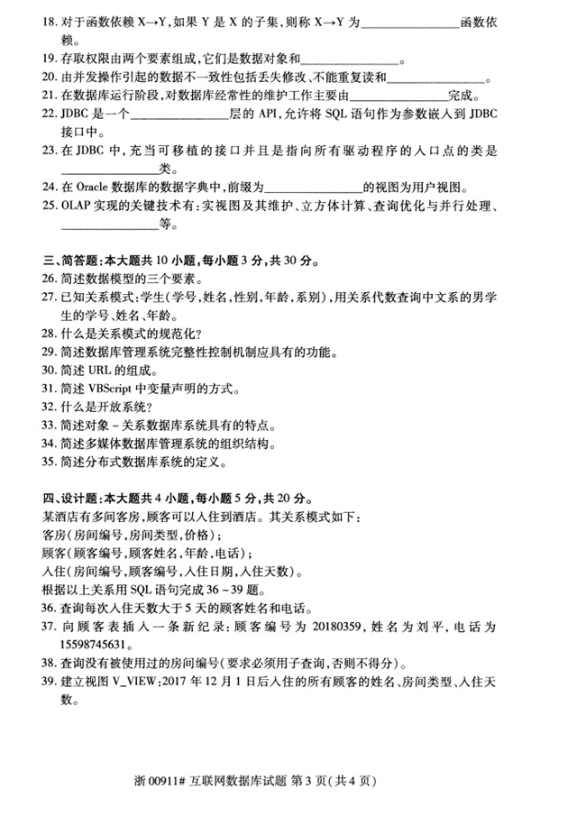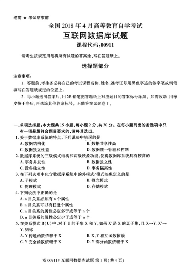 全国2018年4月高等教育自考00911互联网数据库试题PDF