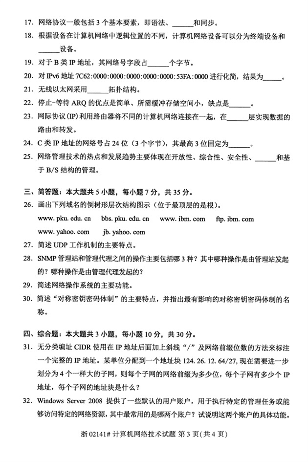 试题科目:计算机网络技术试题