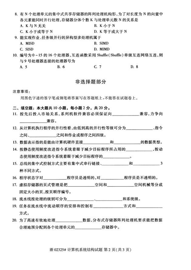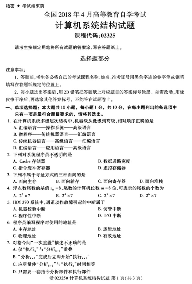 全国2018年4月高等教育自考02325计算机系统结构试题,由浙江自考网整理,供全国自考生参考。更多自考试题练习,敬请自考生关注浙江自考网。
