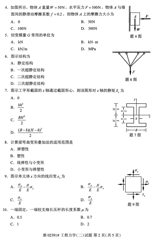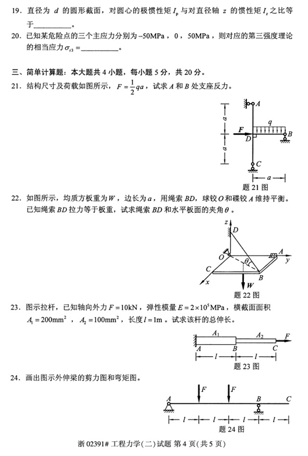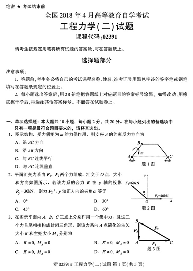 全国2018年4月高等教育自考02391工程力学(二)试题PDF