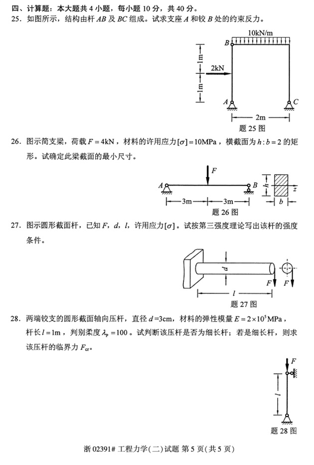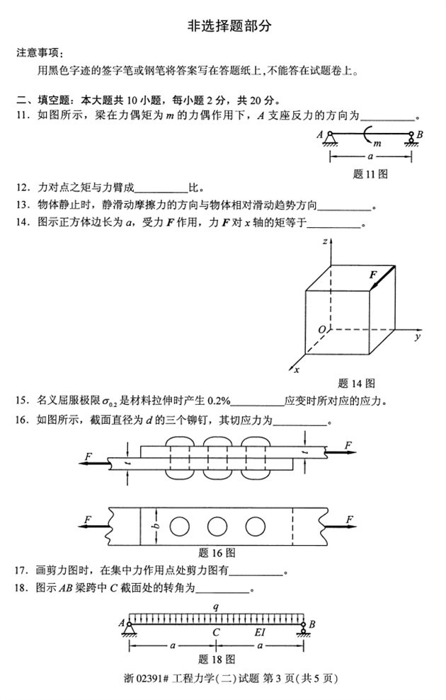 试题科目:工程力学(二)试题