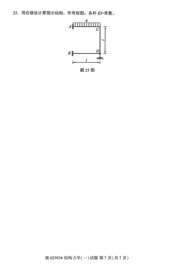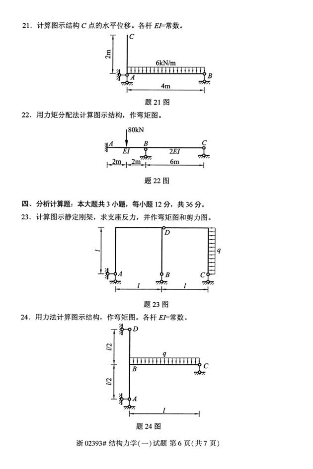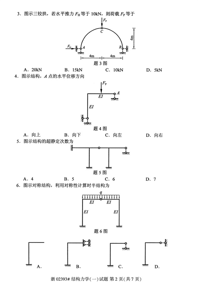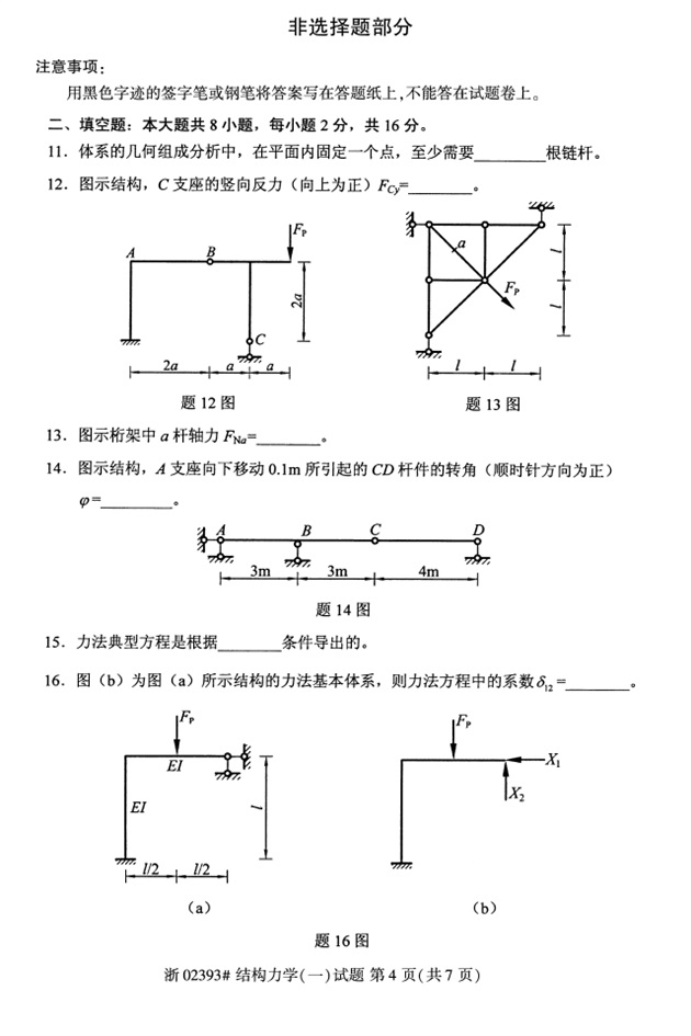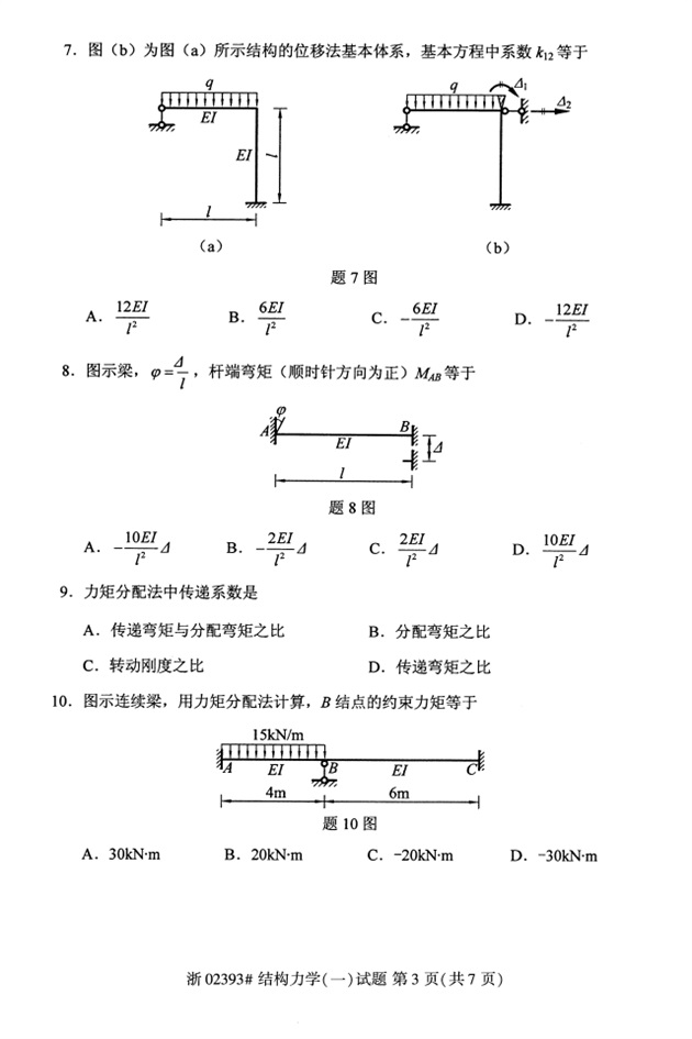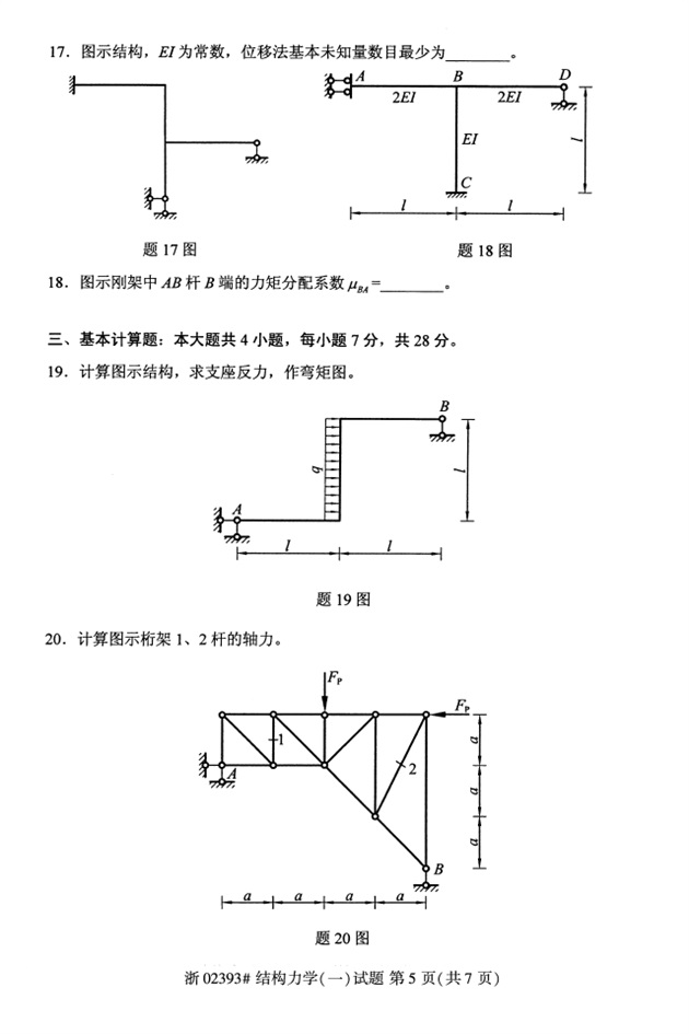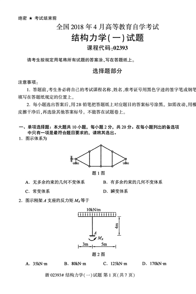 全国2018年4月高等教育自考02393结构力学(一)试题PDF