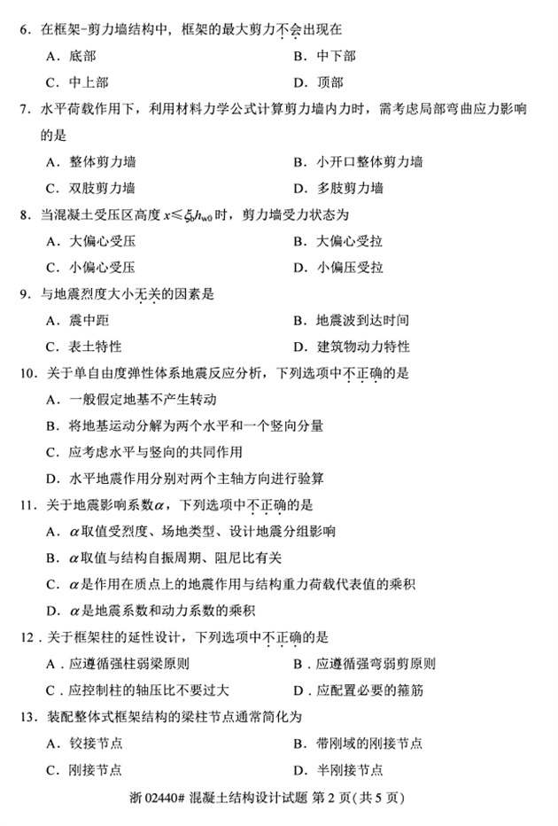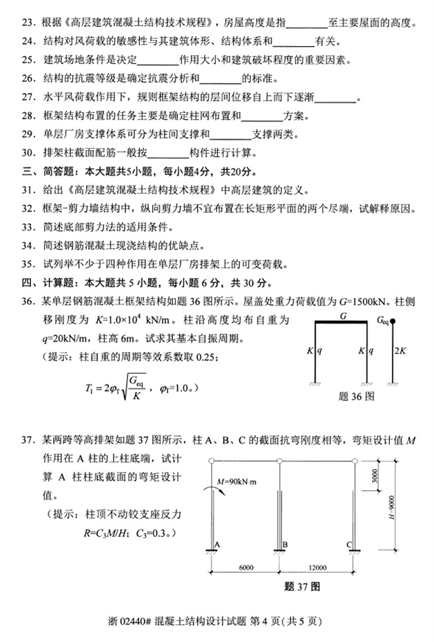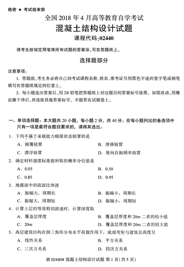 全国2018年4月高等教育自考02440混凝土结构设计试题PDF