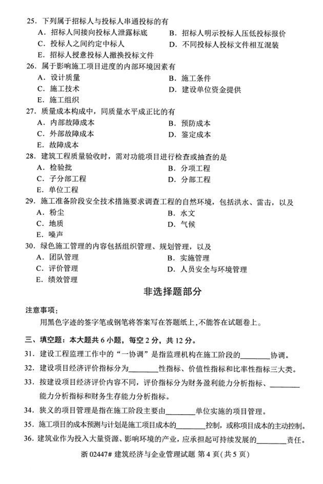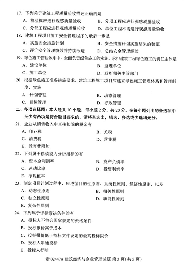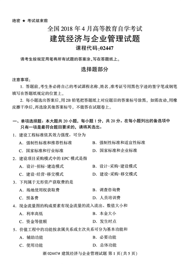 全国2018年4月高等教育自考02447建筑经济与企业管理试题PDF
