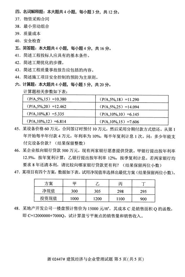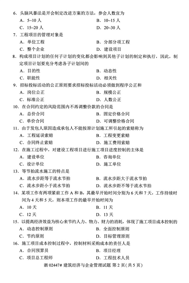 试题科目:建筑经济与企业管理试题